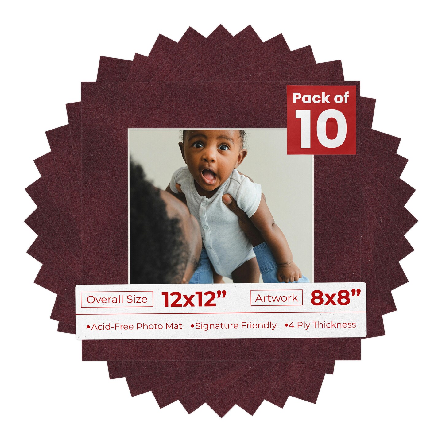 Dark Red Suede Mat Board for 12x12 Frames - Fits 8x8 Photos