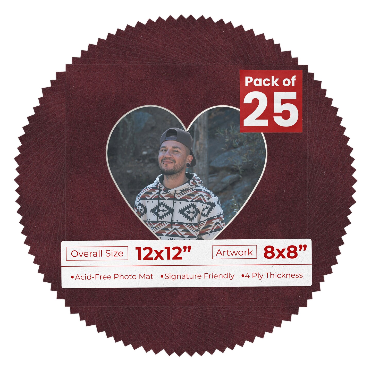 Dark Red Suede Mat Board for 12x12 Frames - Heart Opening for 8x8 Photos