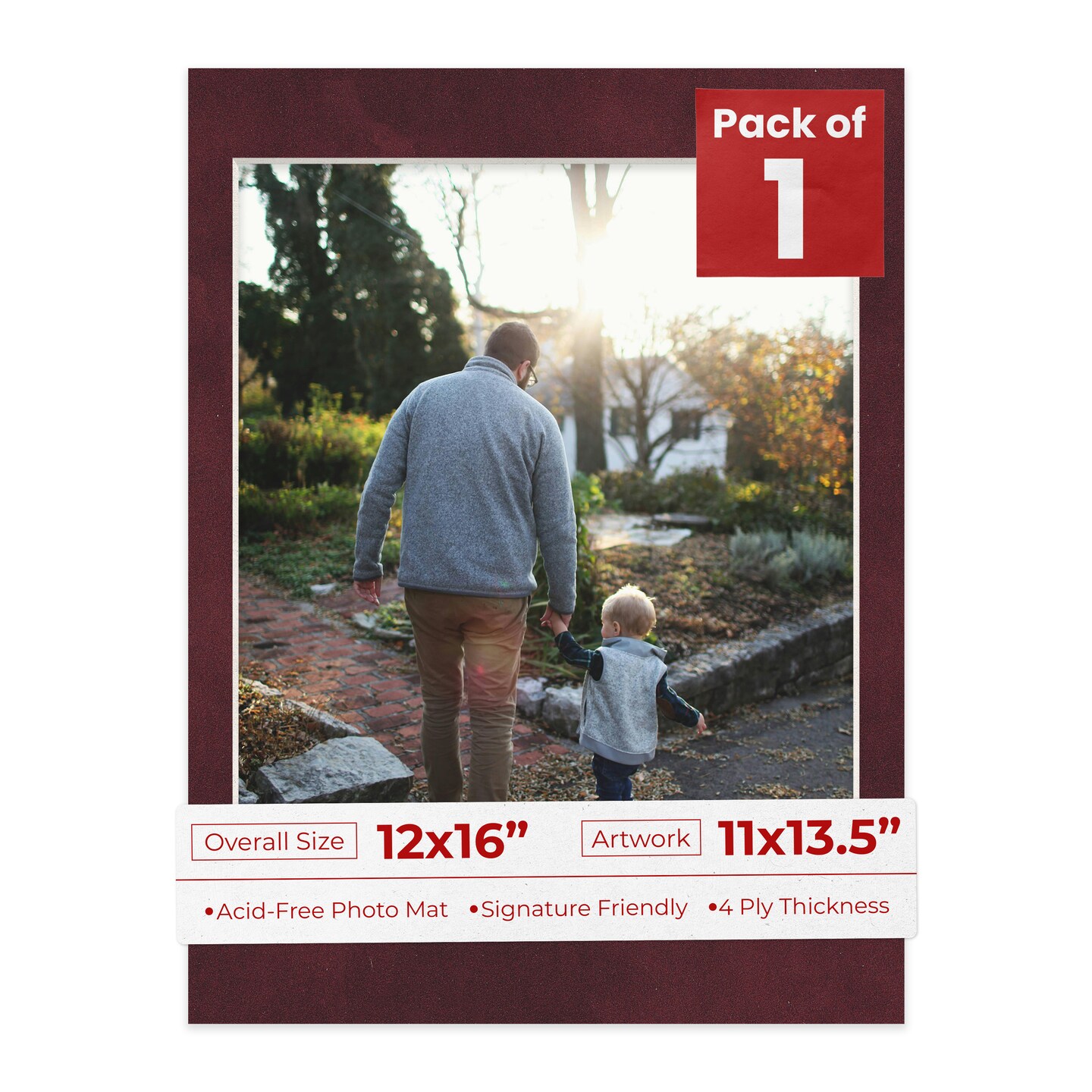 Dark Red Suede Mat Board for 12x16 Frames - Fits 11x13.5 Photos