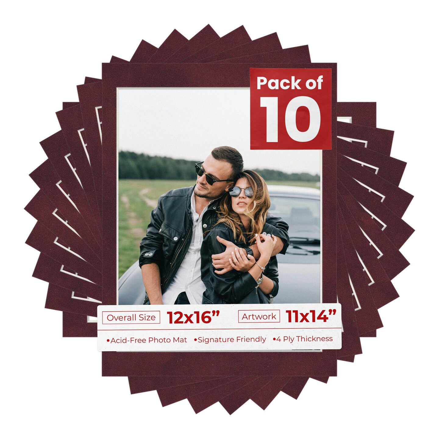 Dark Red Suede Mat Board for 12x16 Frames - Fits 11x14 Photos