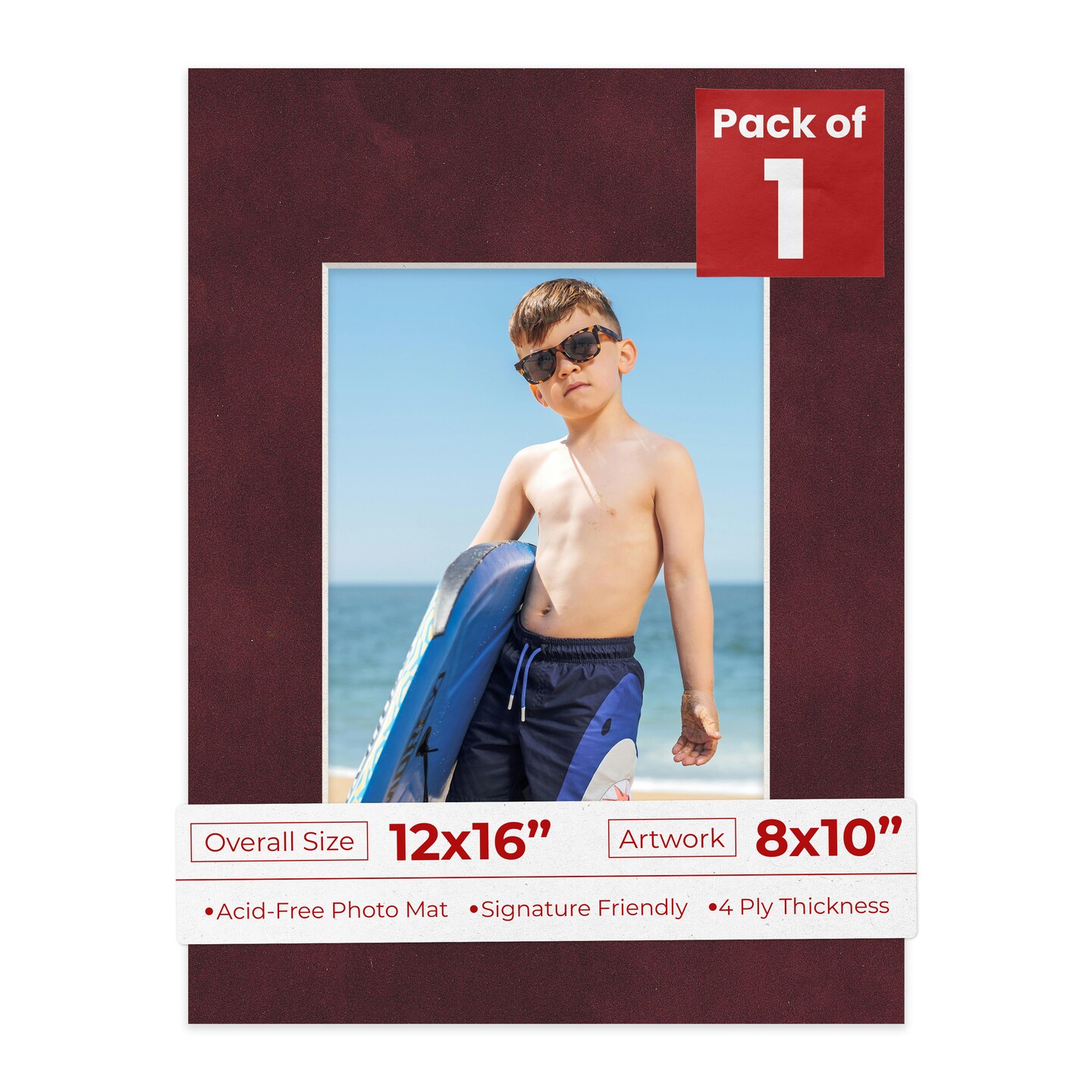 Dark Red Suede Mat Board for 12x16 Frames - Fits 8x10 Photos