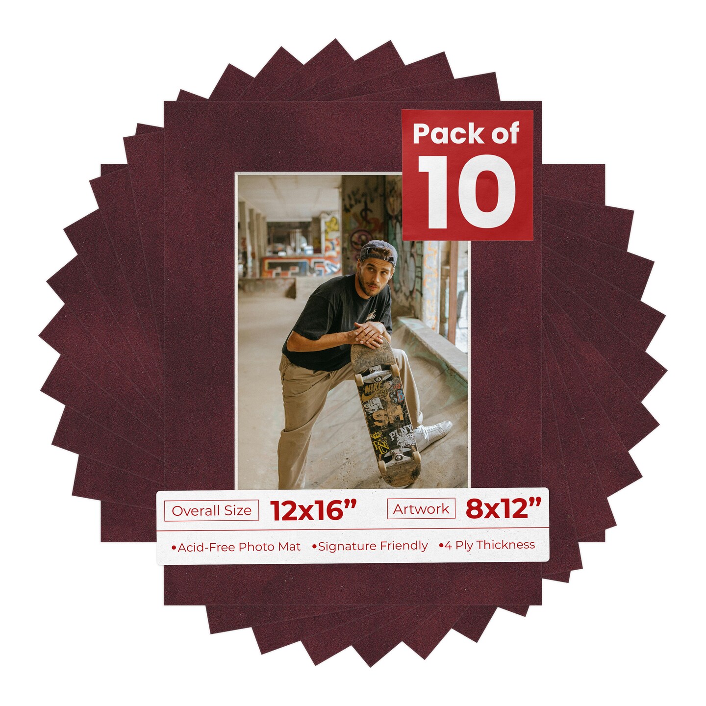 Dark Red Suede Mat Board for 12x16 Frames - Fits 8x12 Photos