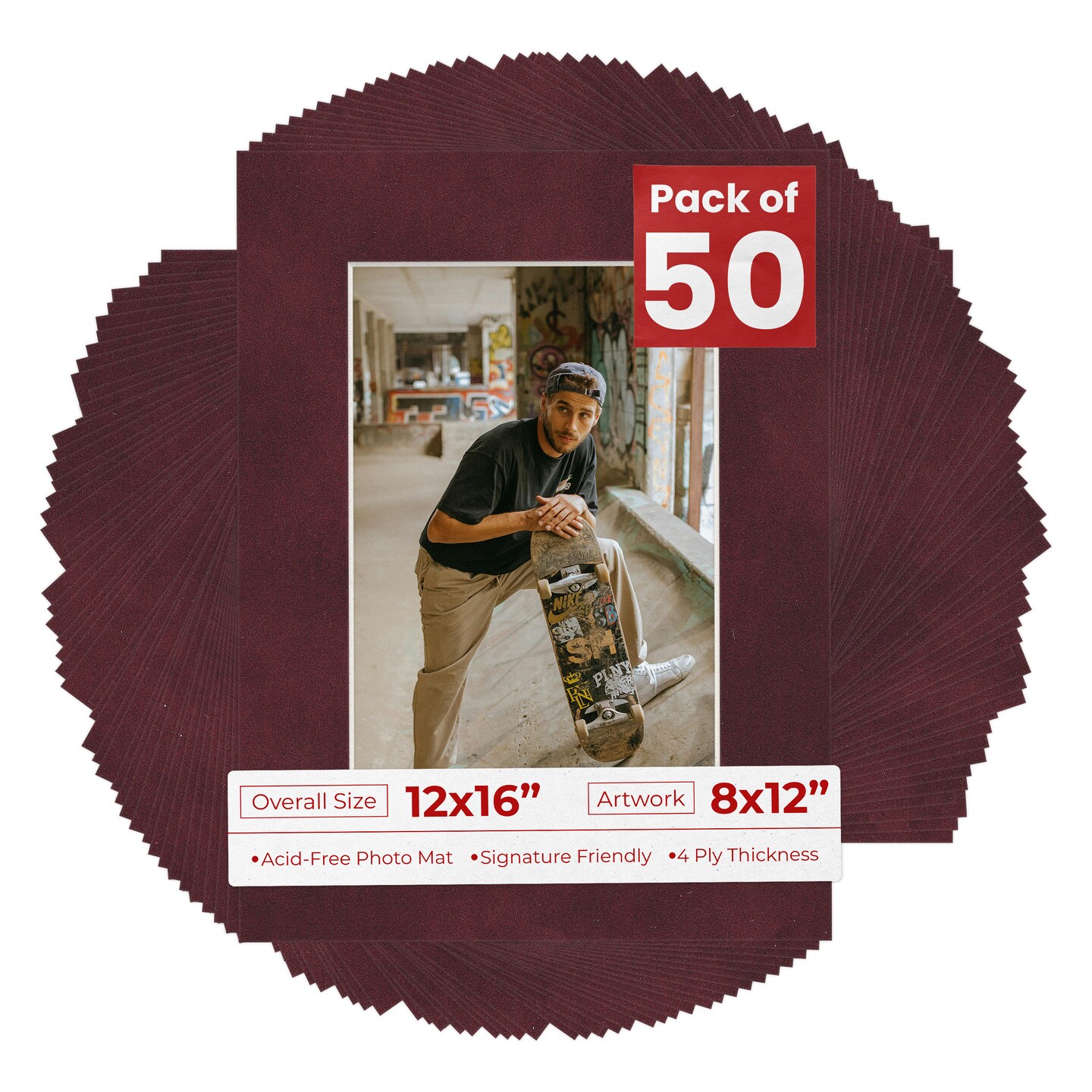 Dark Red Suede Mat Board for 12x16 Frames - Fits 8x12 Photos
