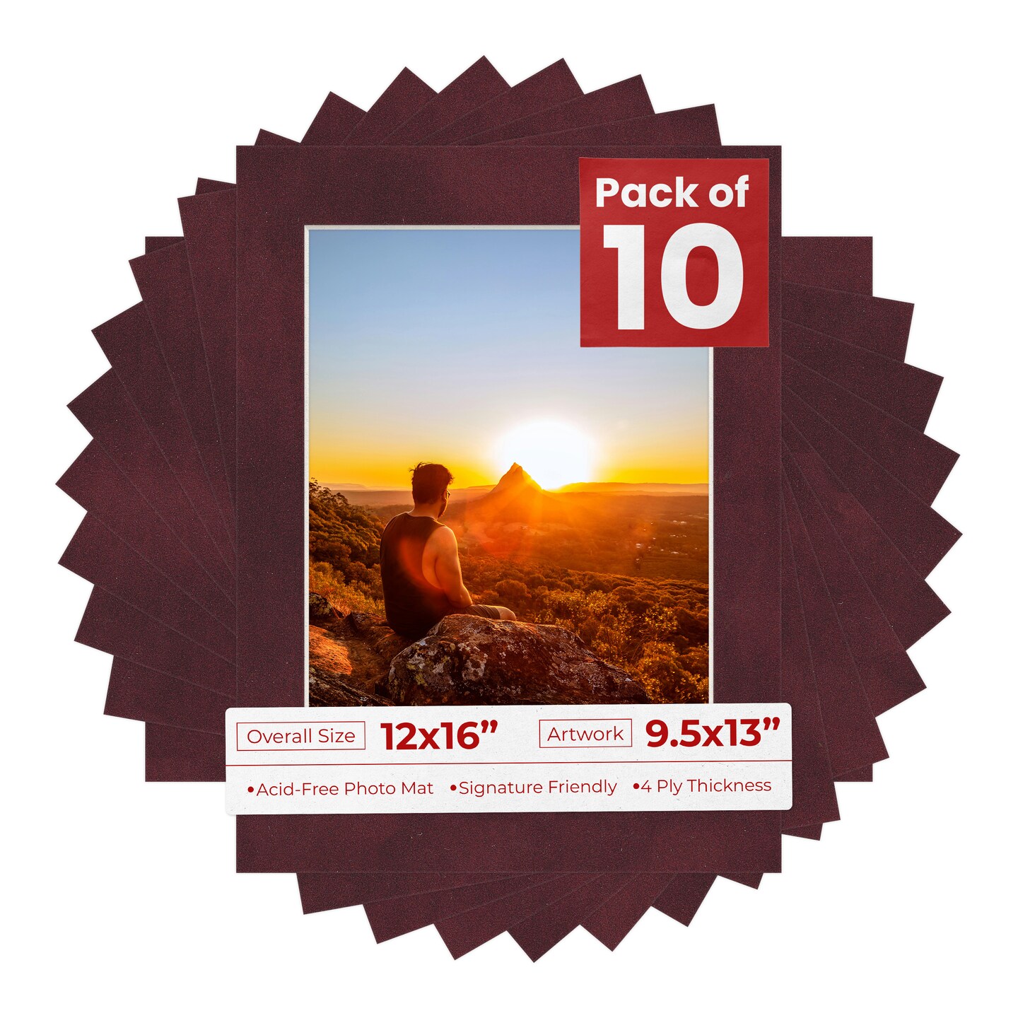 Dark Red Suede Mat Board for 12x16 Frames - Fits 9.5x13 Photos