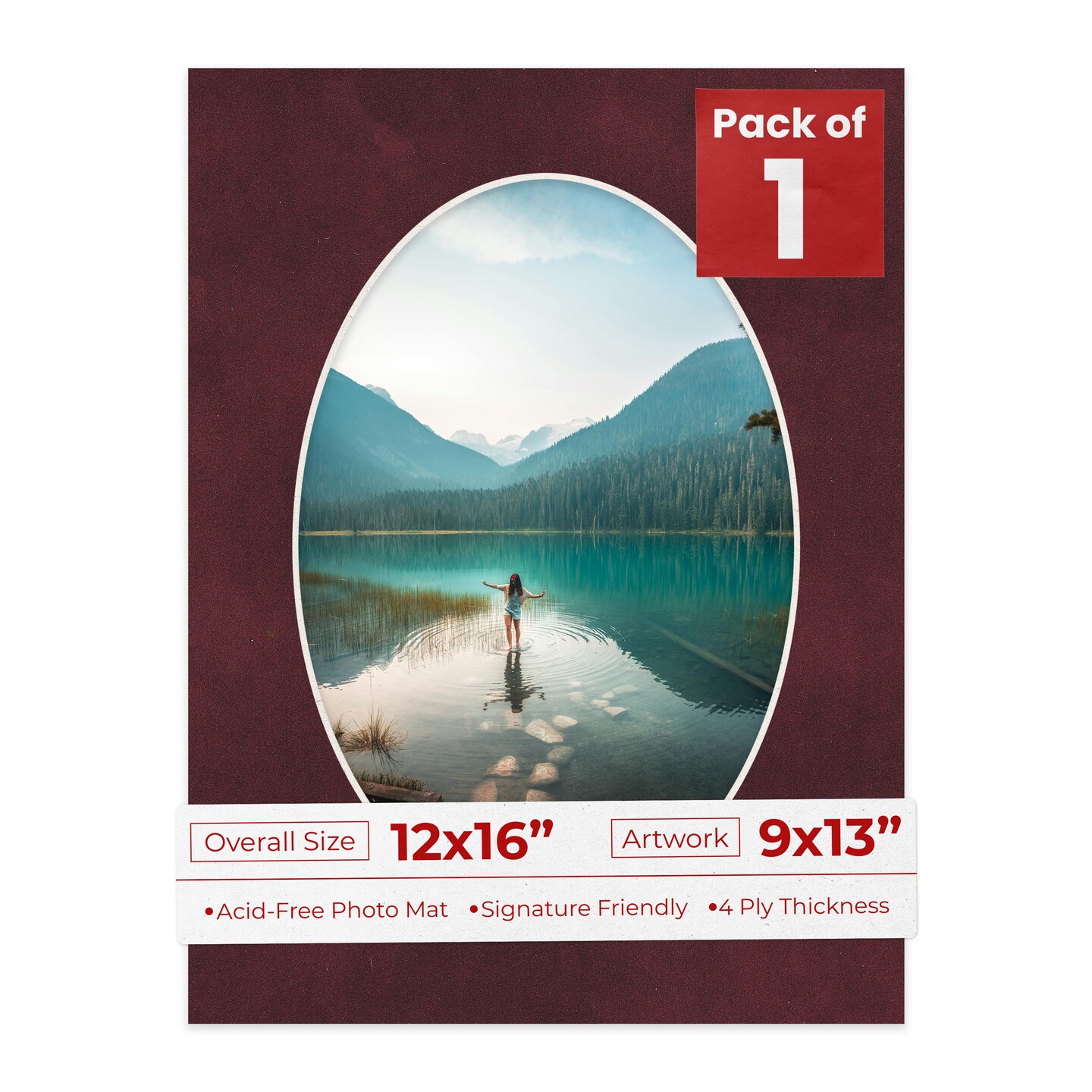 Dark Red Suede Mat Board for 12x16 Frames - Oval Opening for 9x13 Photos