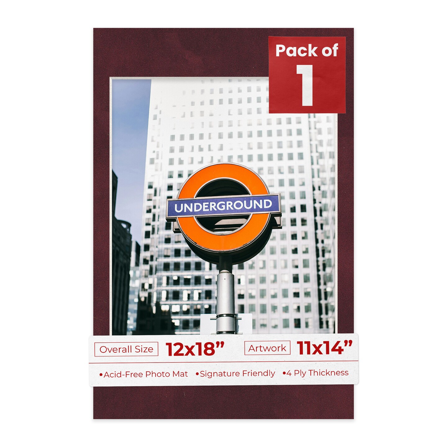 Dark Red Suede Mat Board for 12x18 Frames - Fits 11x14 Photos