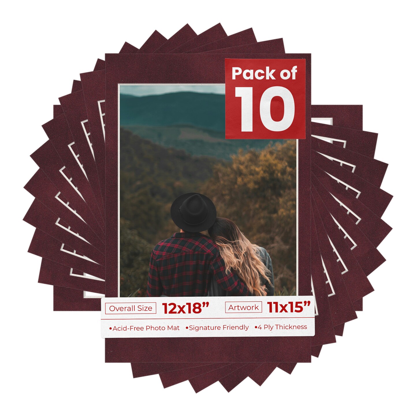 Dark Red Suede Mat Board for 12x18 Frames - Fits 11x15 Photos