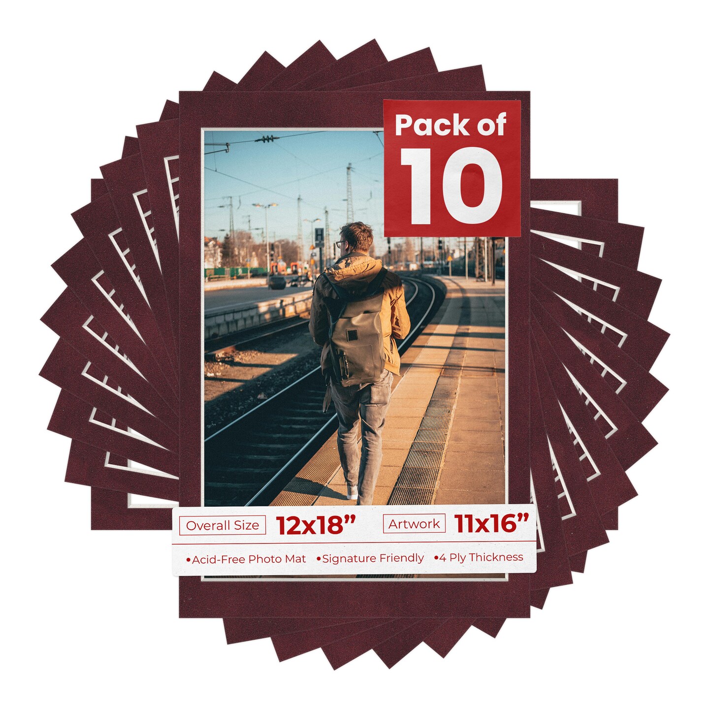 Dark Red Suede Mat Board for 12x18 Frames - Fits 11x16 Photos