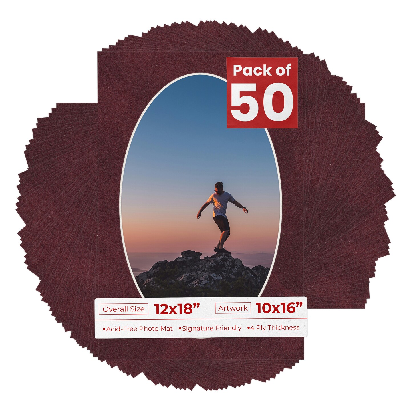 Dark Red Suede Mat Board for 12x18 Frames - Oval Opening for 10x16 Photos
