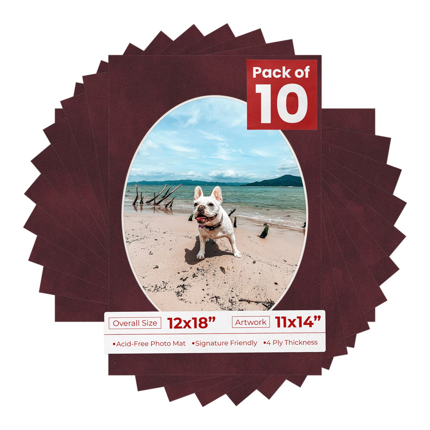 Dark Red Suede Mat Board for 12x18 Frames - Oval Opening for 11x14 Photos
