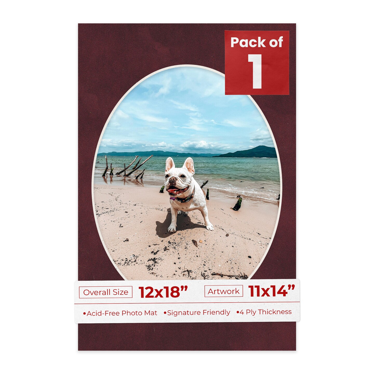 Dark Red Suede Mat Board for 12x18 Frames - Oval Opening for 11x14 Photos