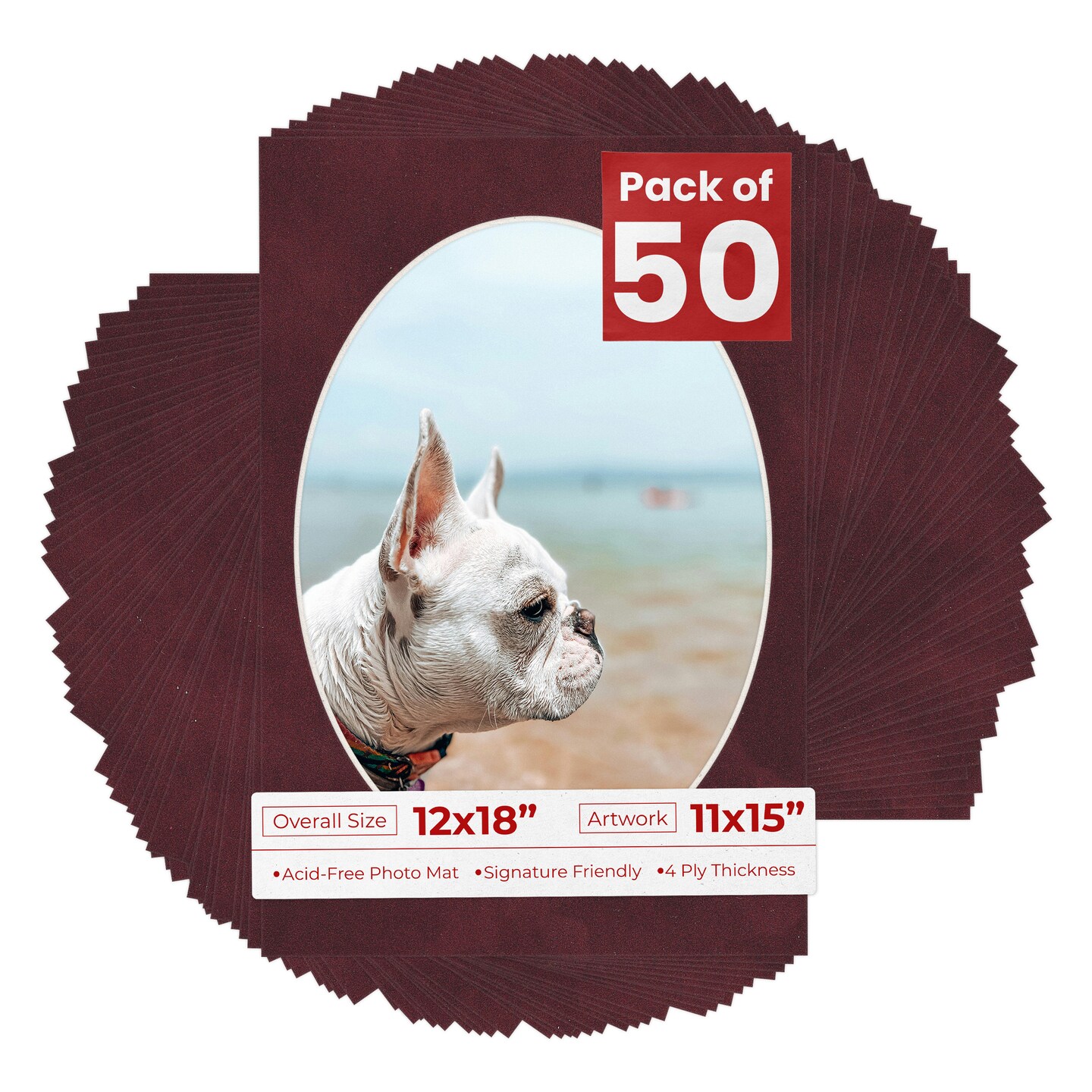 Dark Red Suede Mat Board for 12x18 Frames - Oval Opening for 11x15 Photos
