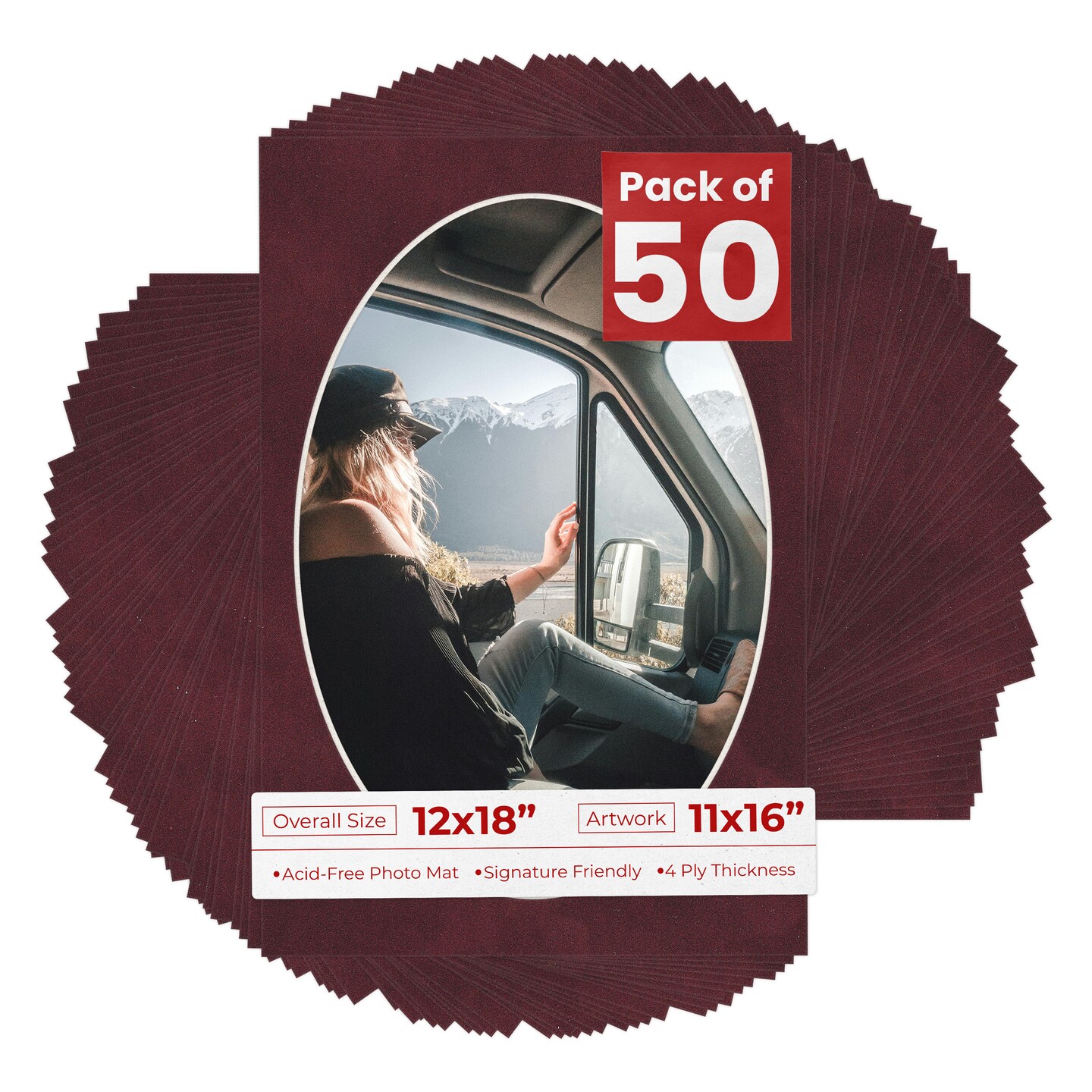 Dark Red Suede Mat Board for 12x18 Frames - Oval Opening for 11x16 Photos