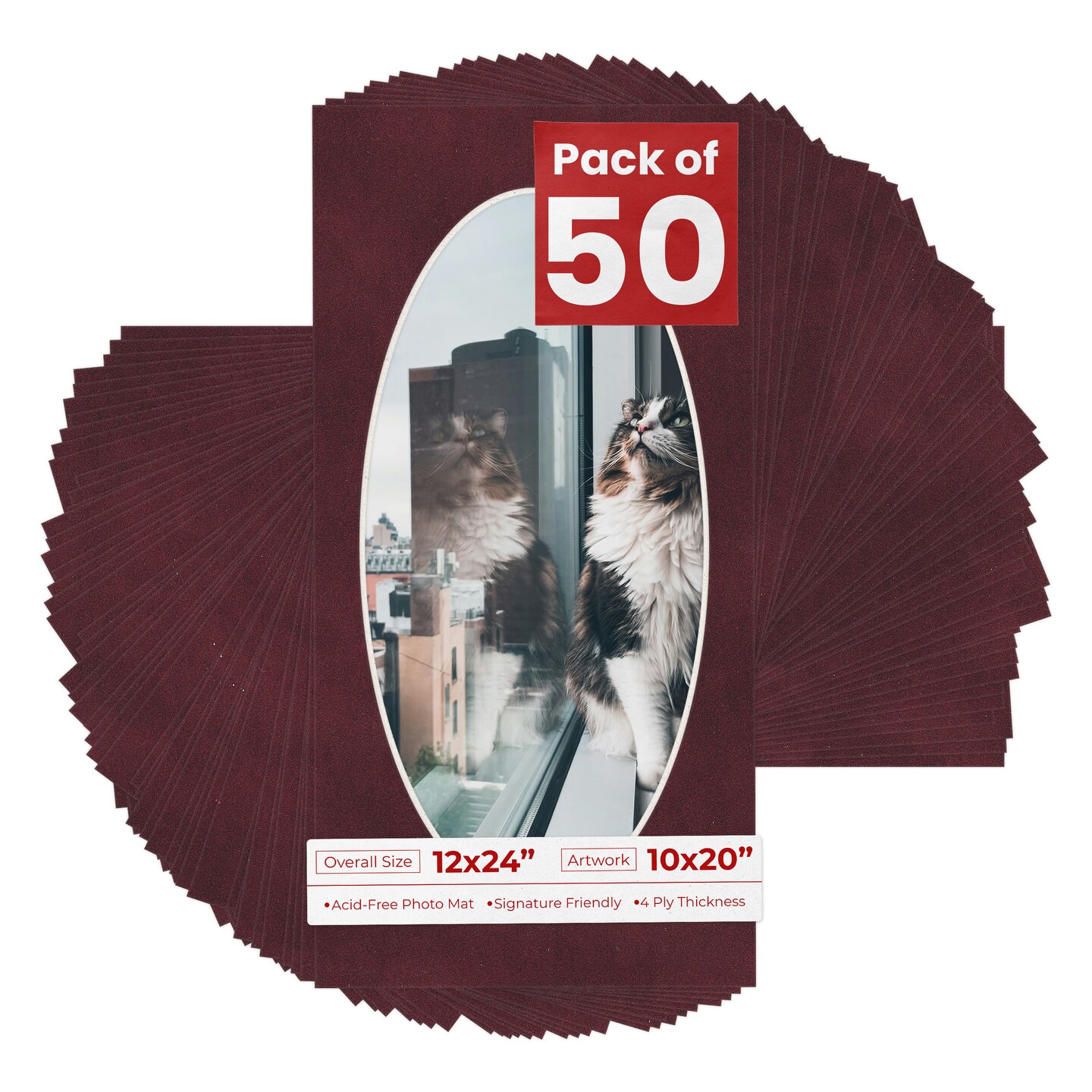 Dark Red Suede Mat Board for 12x24 Frames - Oval Opening for 10x20 Photos