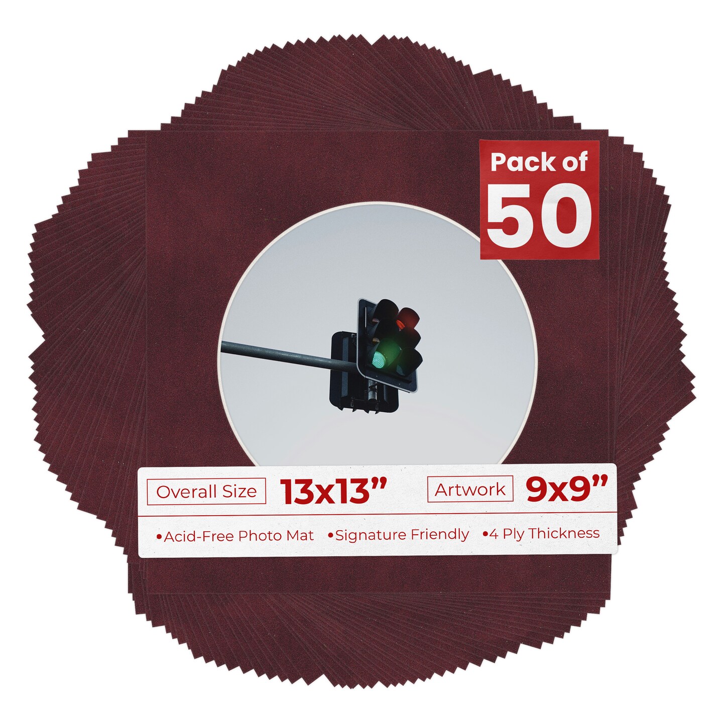 Dark Red Suede Mat Board for 13x13 Frames - Circle Opening for 9x9 Photos