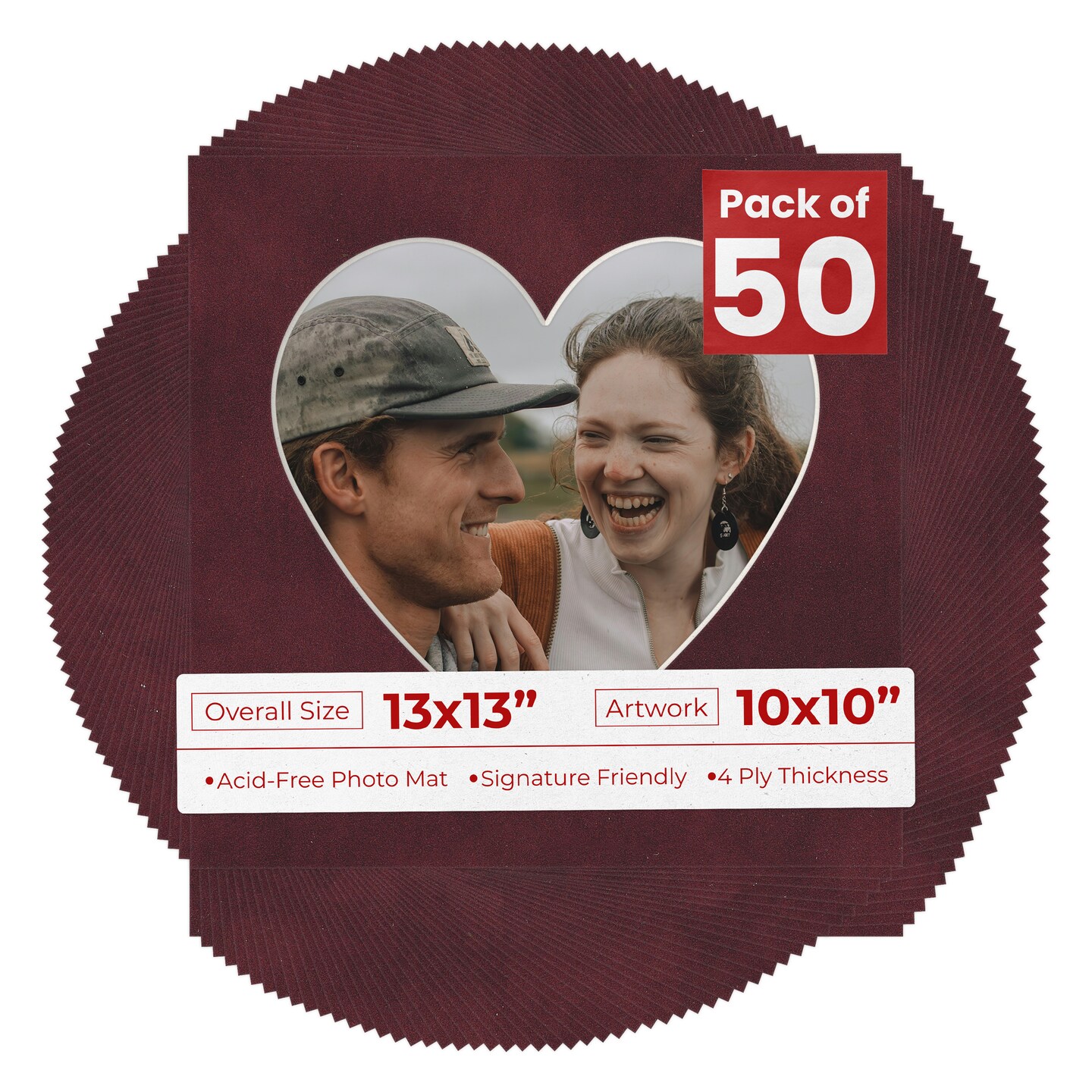 Dark Red Suede Mat Board for 13x13 Frames - Heart Opening for 10x10 Photos