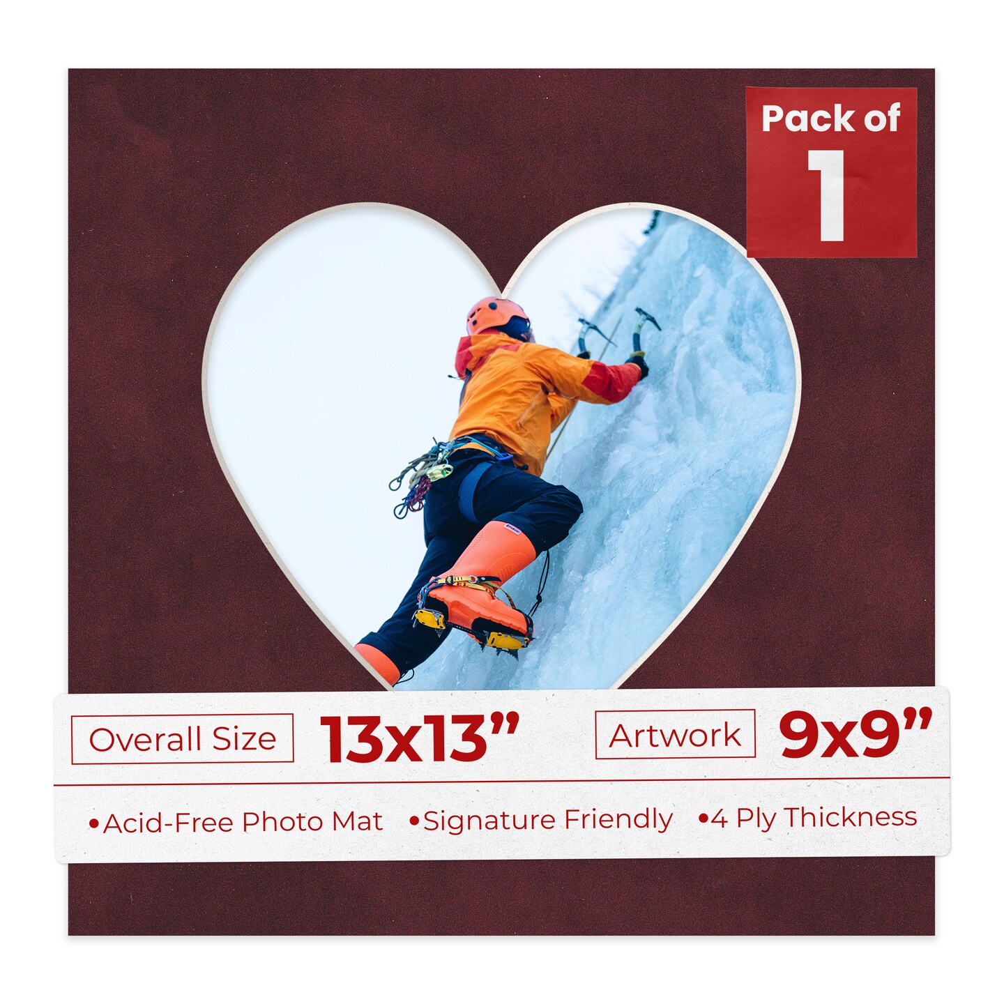 Dark Red Suede Mat Board for 13x13 Frames - Heart Opening for 9x9 Photos