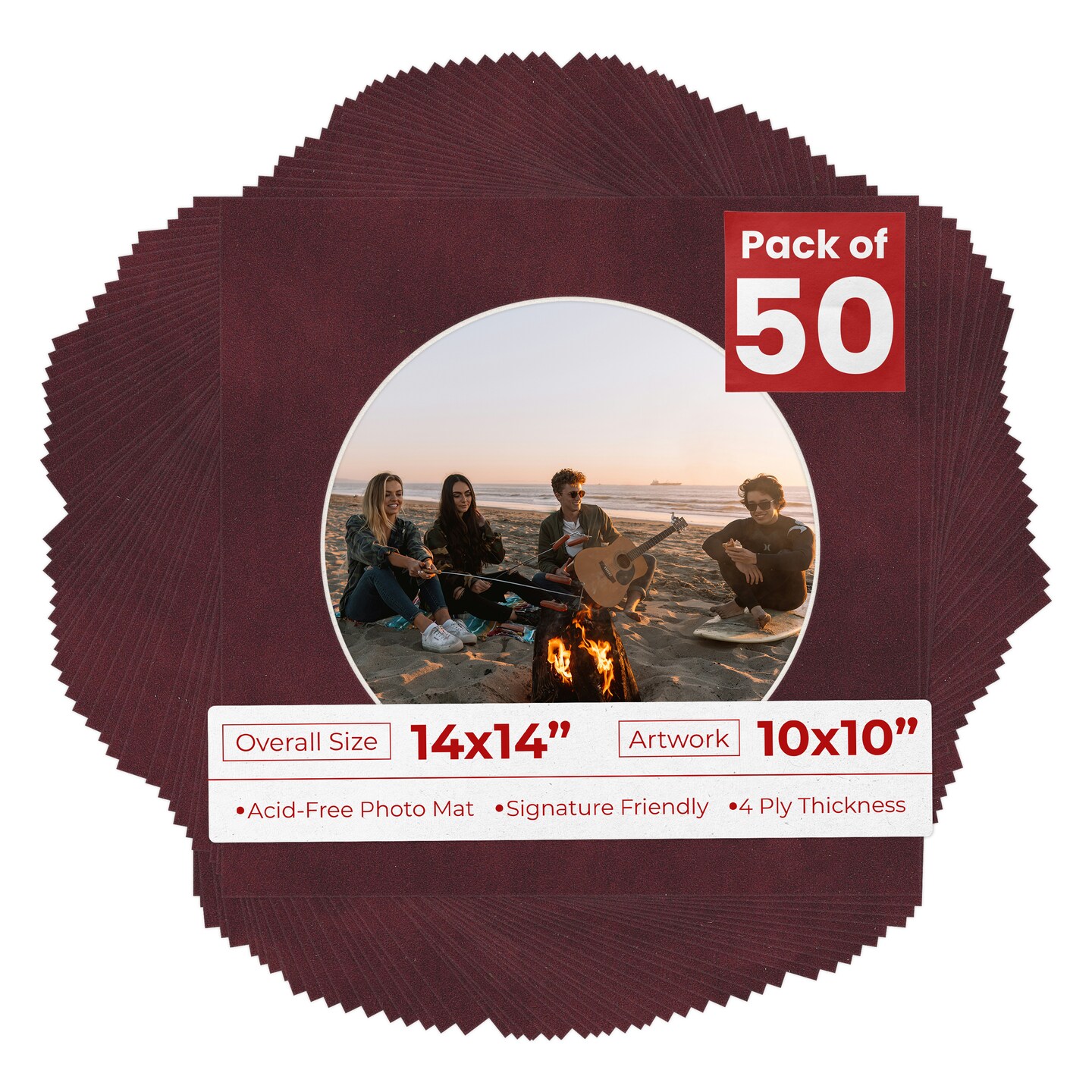 Dark Red Suede Mat Board for 14x14 Frames - Circle Opening for 10x10 Photos