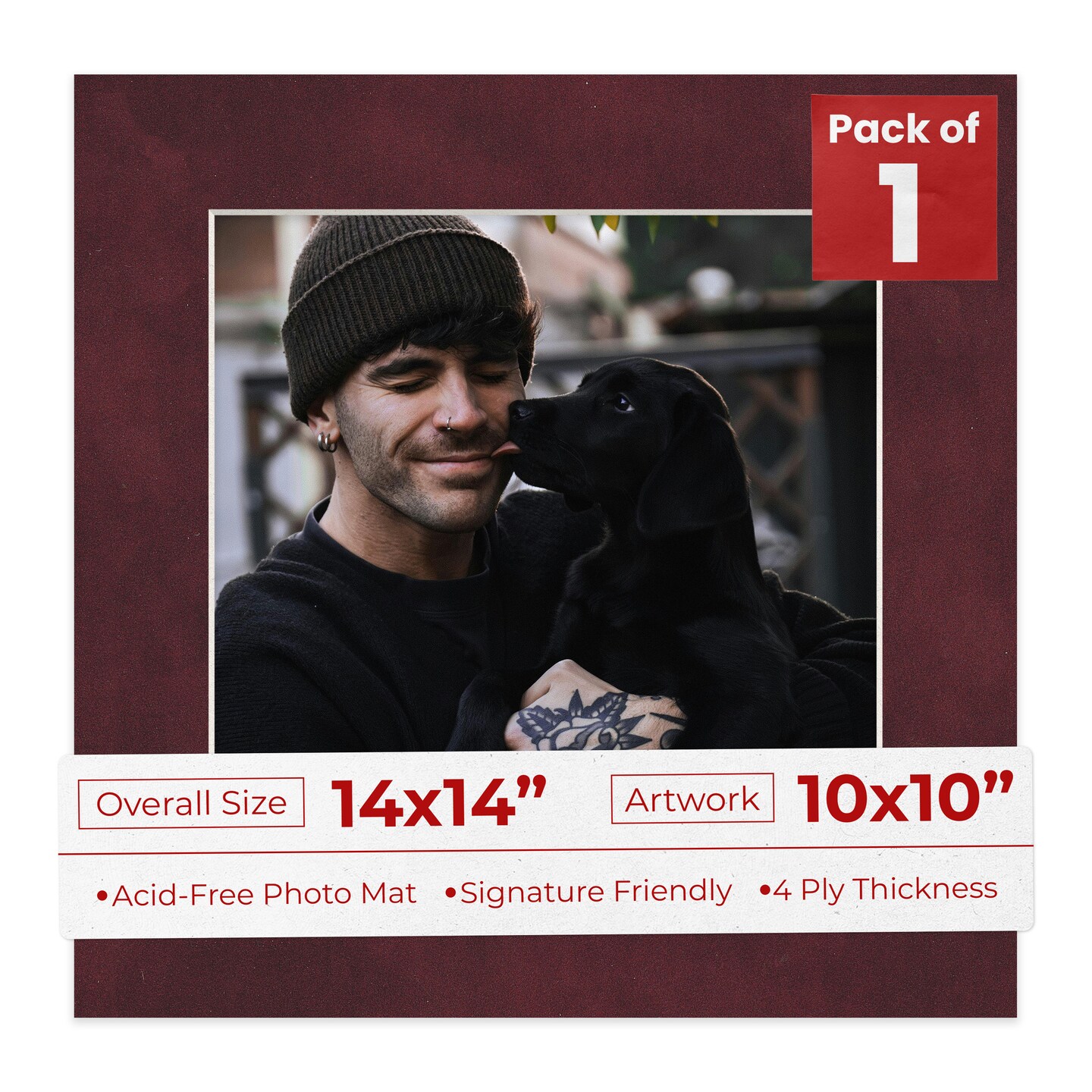 Dark Red Suede Mat Board for 14x14 Frames - Fits 10x10 Photos