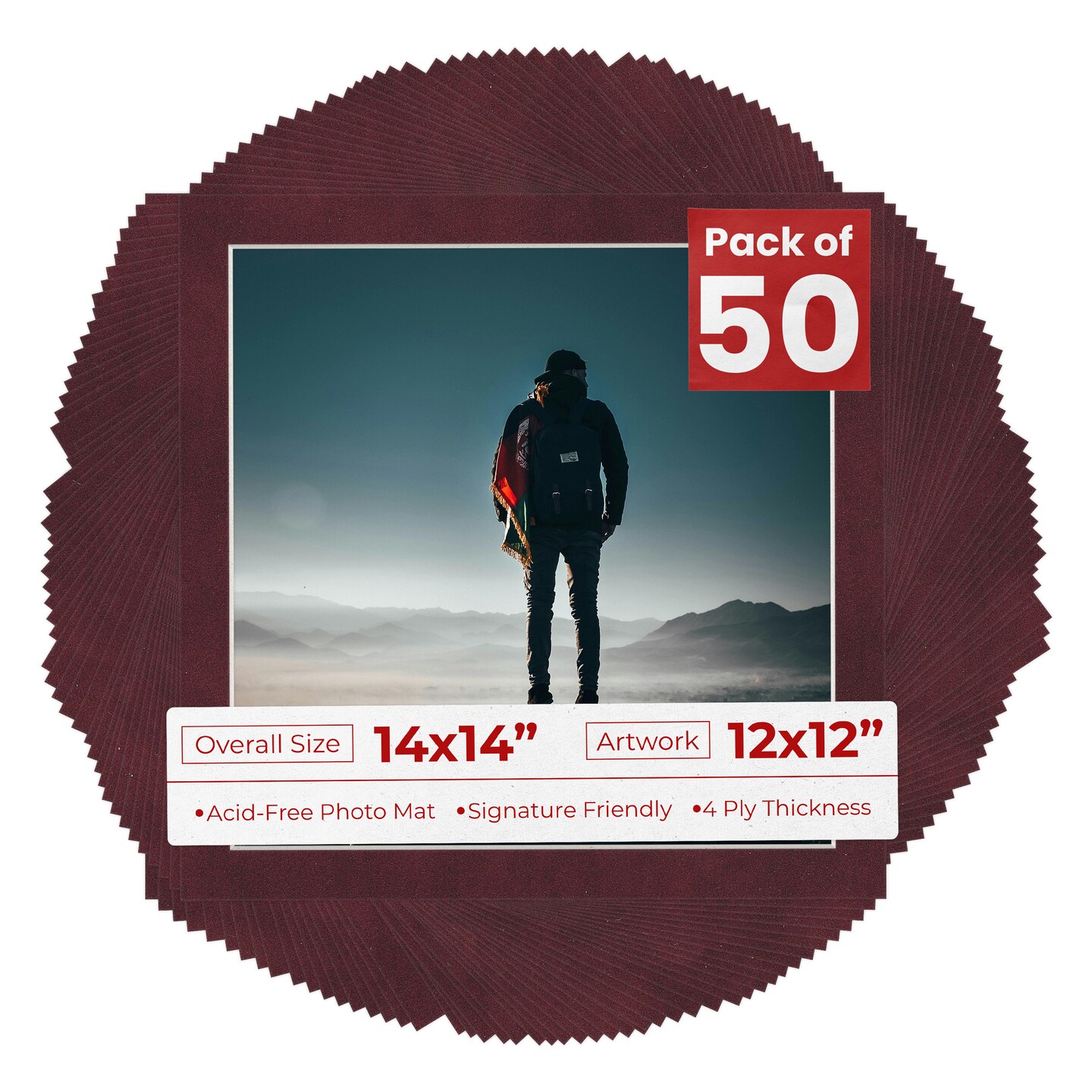 Dark Red Suede Mat Board for 14x14 Frames - Fits 12x12 Photos