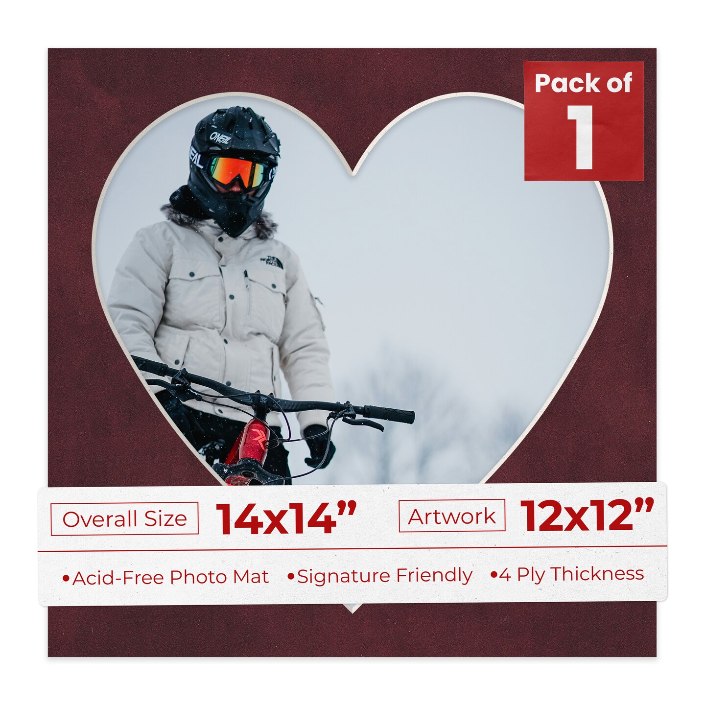 Dark Red Suede Mat Board for 14x14 Frames - Heart Opening for 12x12 Photos