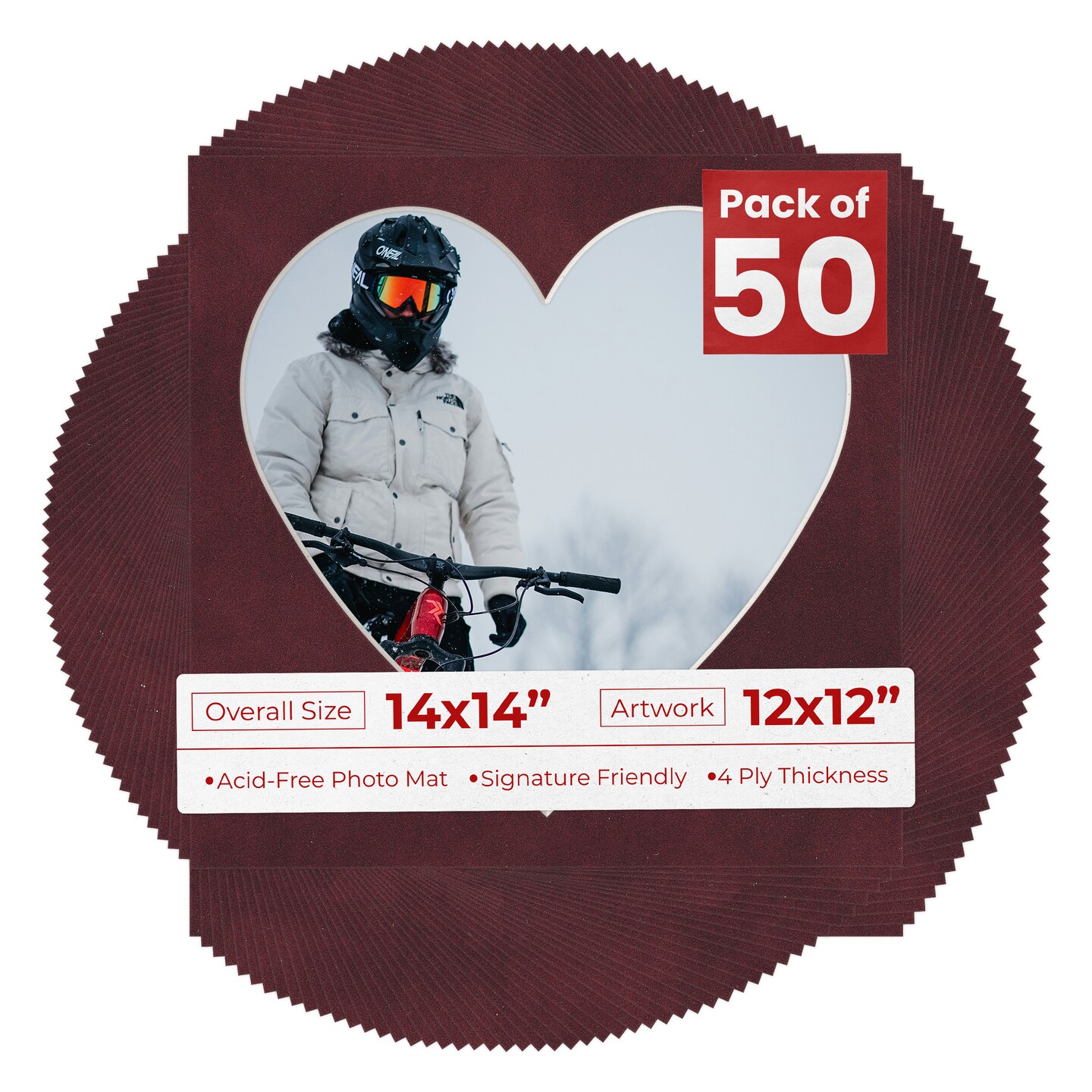 Dark Red Suede Mat Board for 14x14 Frames - Heart Opening for 12x12 Photos