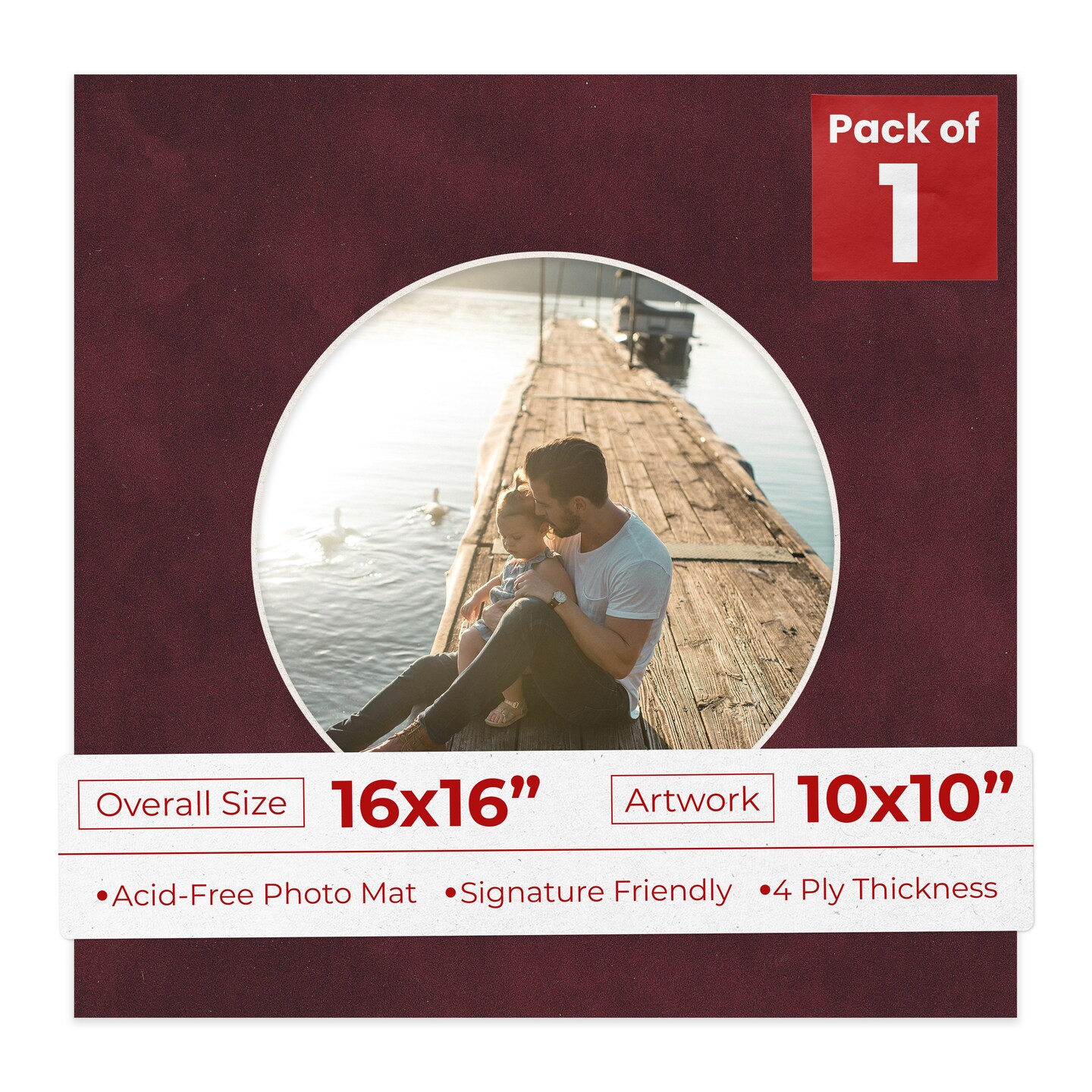 Dark Red Suede Mat Board for 16x16 Frames - Circle Opening for 10x10 Photos