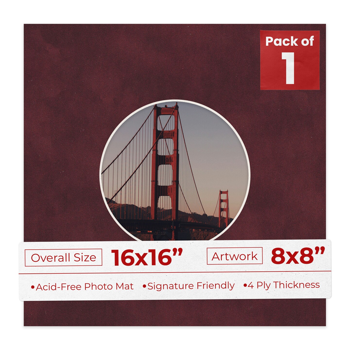 Dark Red Suede Mat Board for 16x16 Frames - Circle Opening for 8x8 Photos
