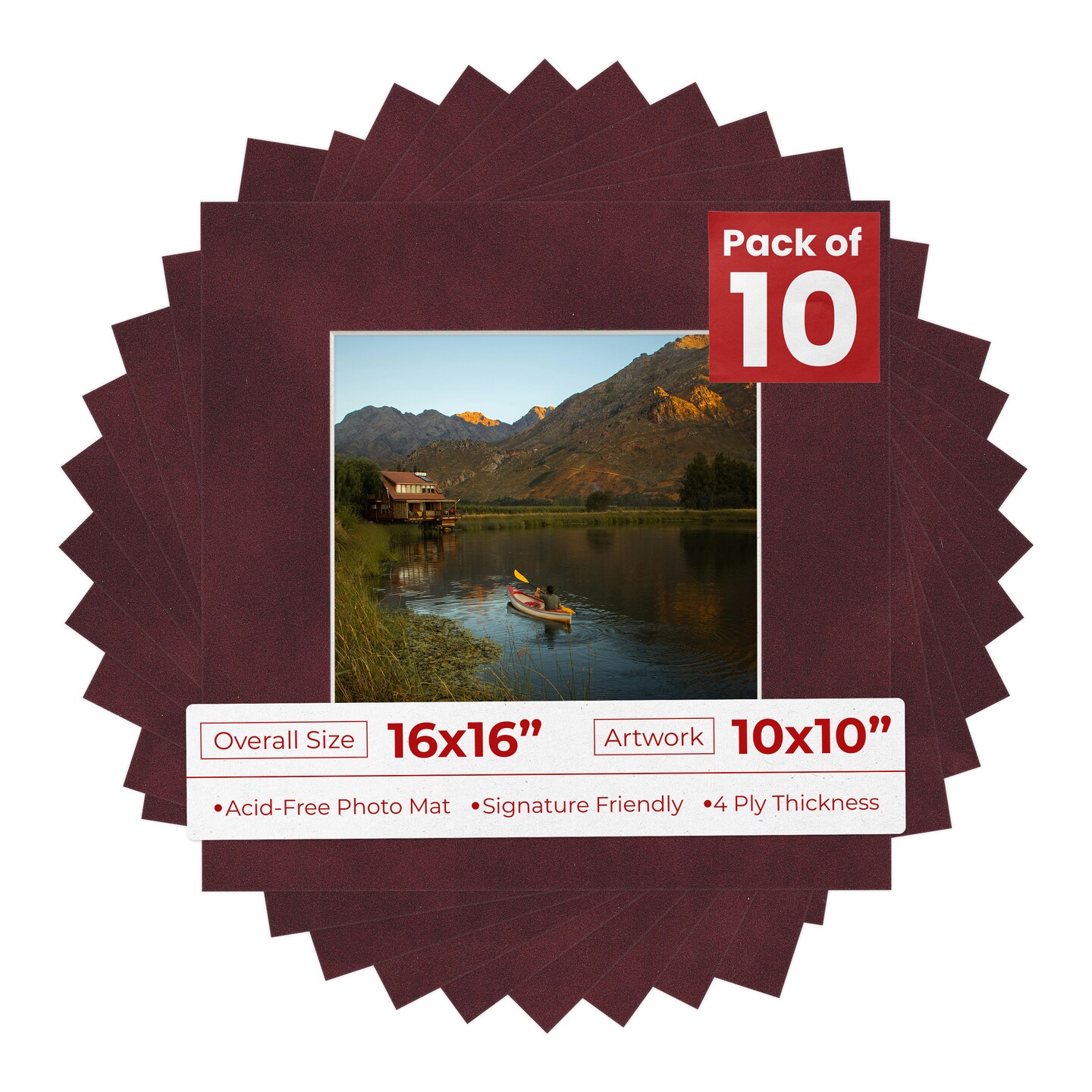 Dark Red Suede Mat Board for 16x16 Frames - Fits 10x10 Photos