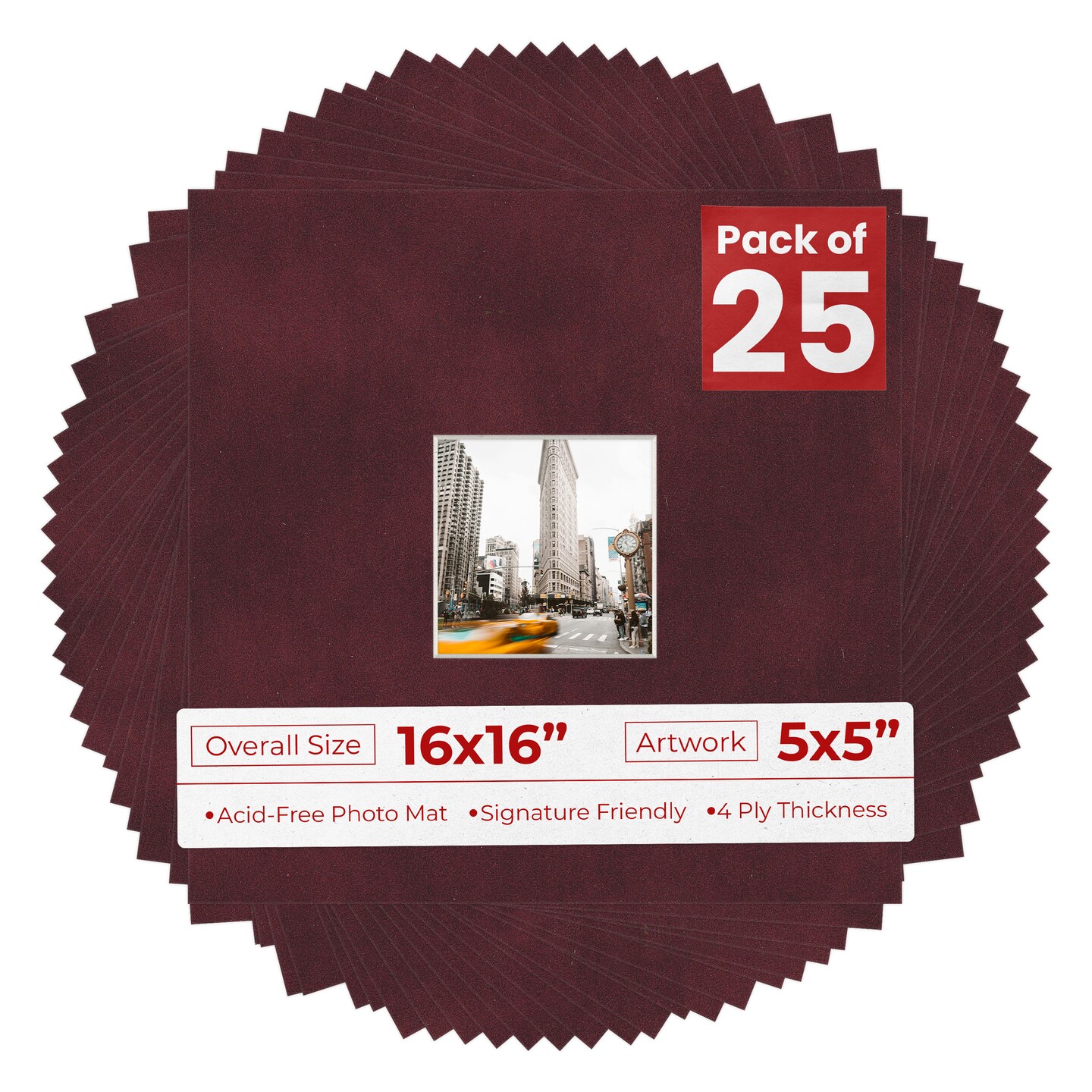 Dark Red Suede Mat Board for 16x16 Frames - Fits 5x5 Photos