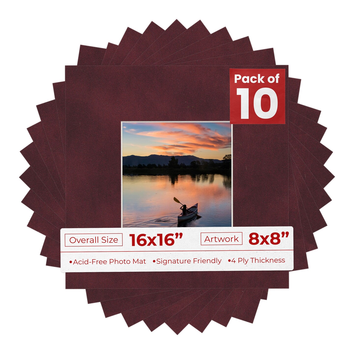 Dark Red Suede Mat Board for 16x16 Frames - Fits 8x8 Photos