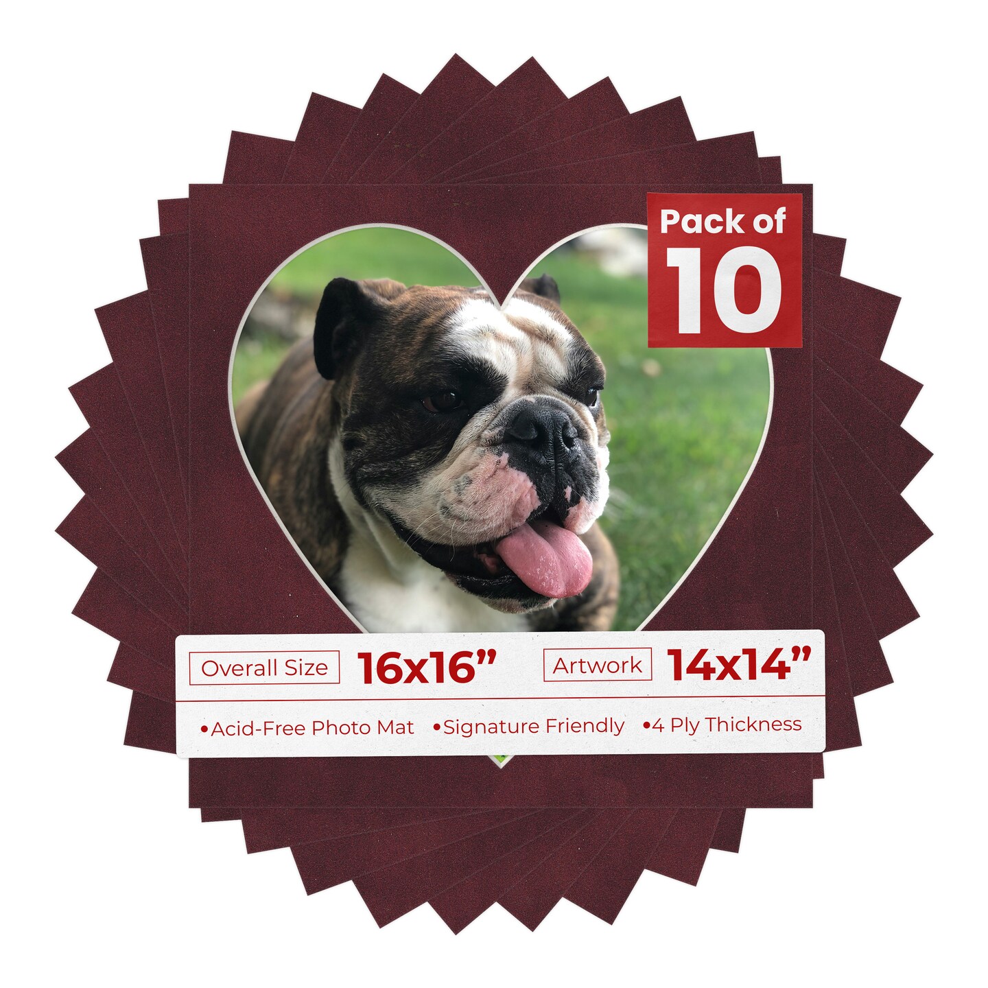 Dark Red Suede Mat Board for 16x16 Frames - Heart Opening for 14x14 Photos