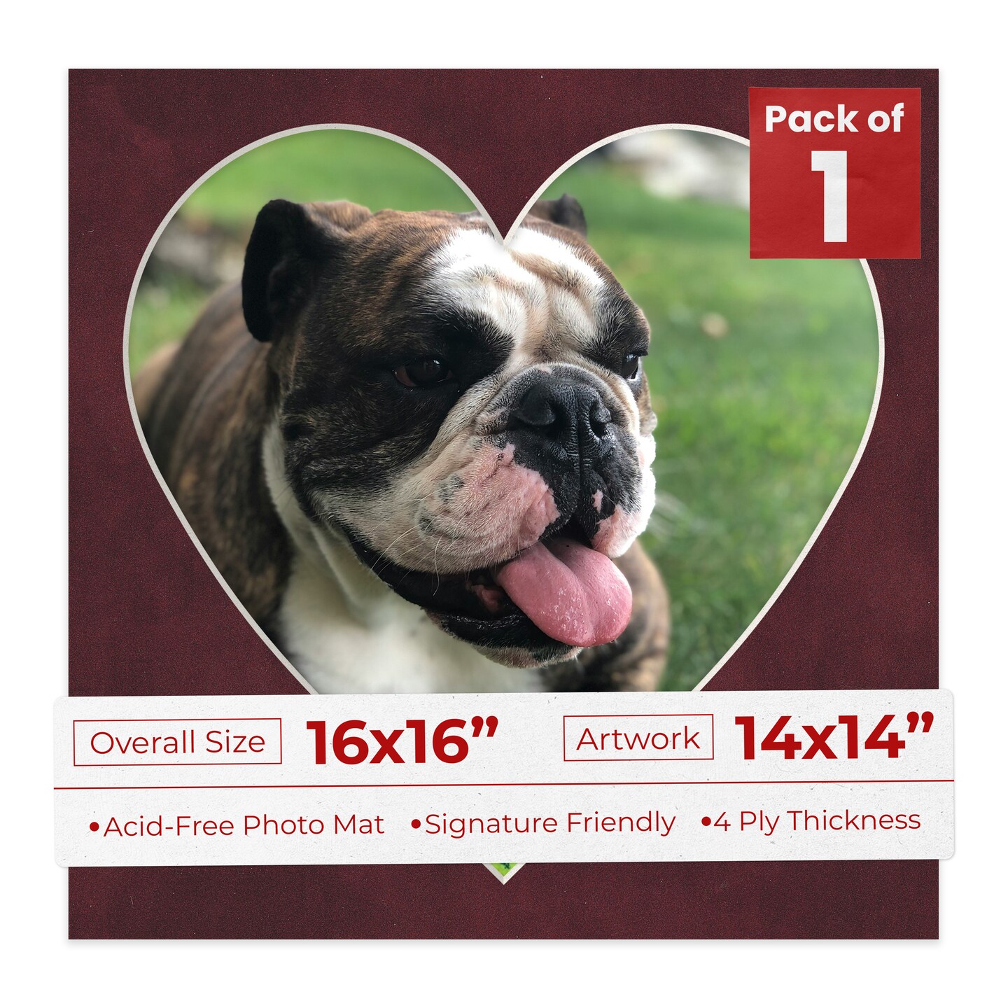Dark Red Suede Mat Board for 16x16 Frames - Heart Opening for 14x14 Photos