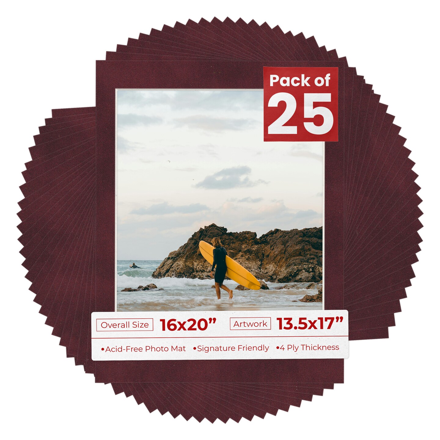 Dark Red Suede Mat Board for 16x20 Frames - Fits 13.5x17 Photos