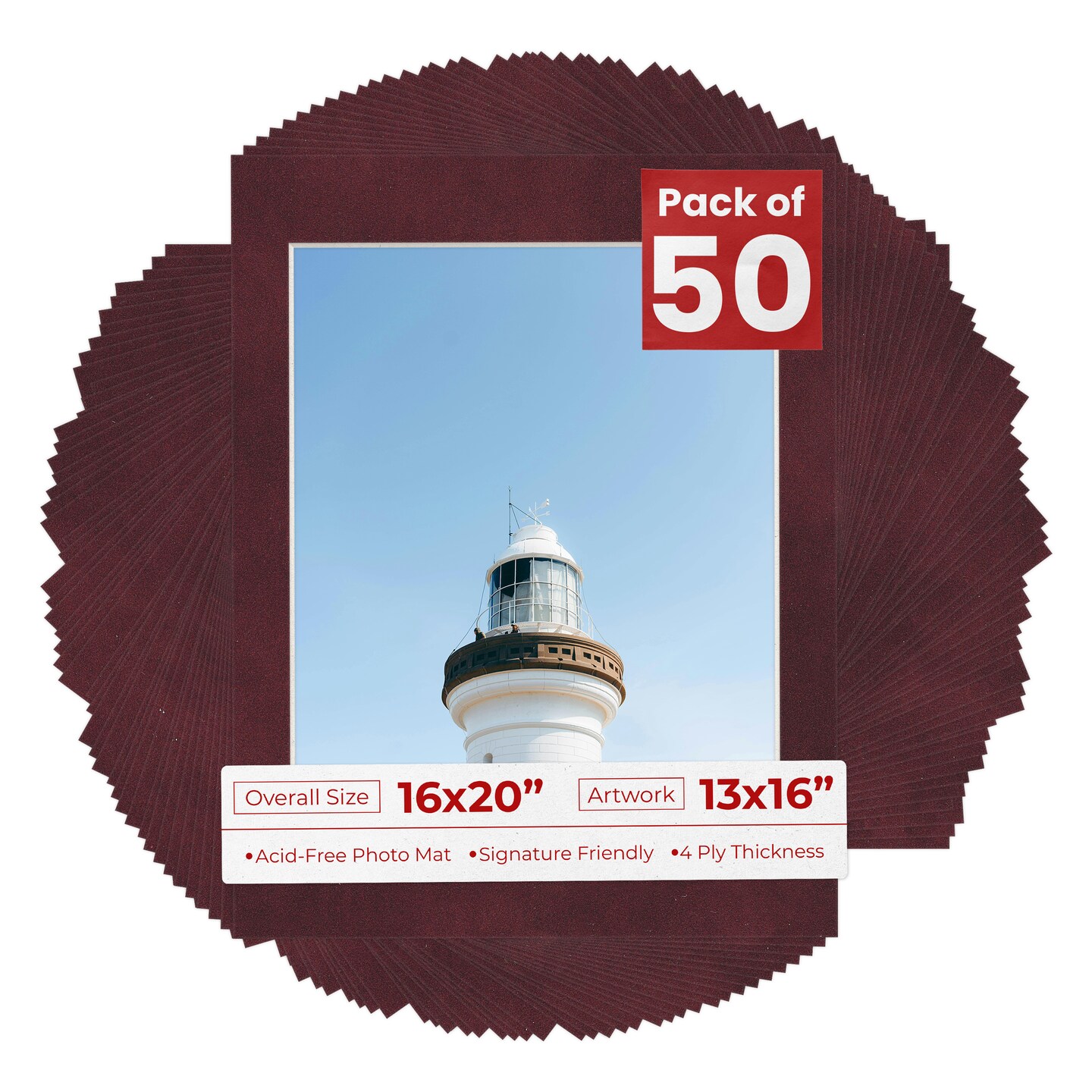 Dark Red Suede Mat Board for 16x20 Frames - Fits 13x16 Photos