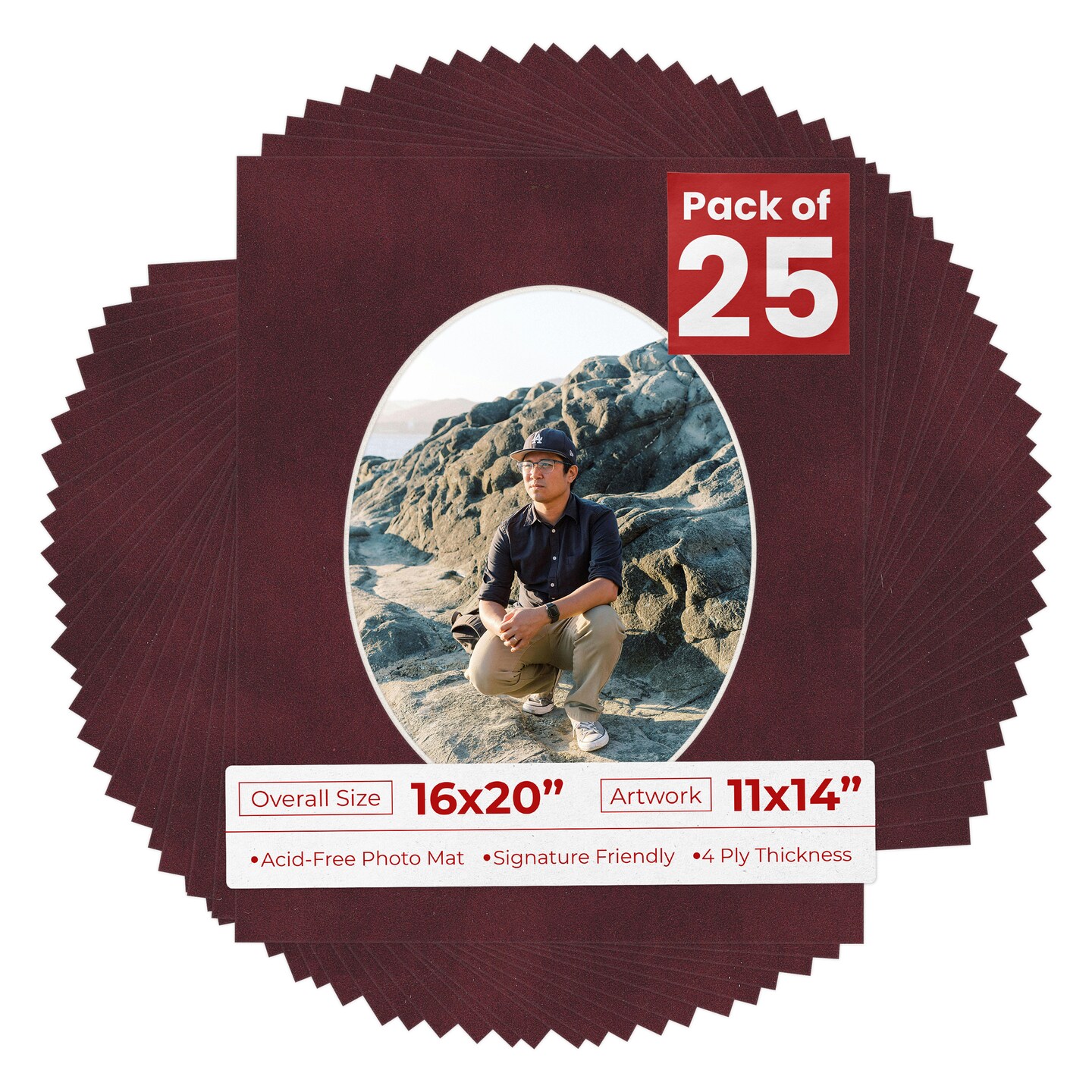 Dark Red Suede Mat Board for 16x20 Frames - Oval Opening for 11x14 Photos