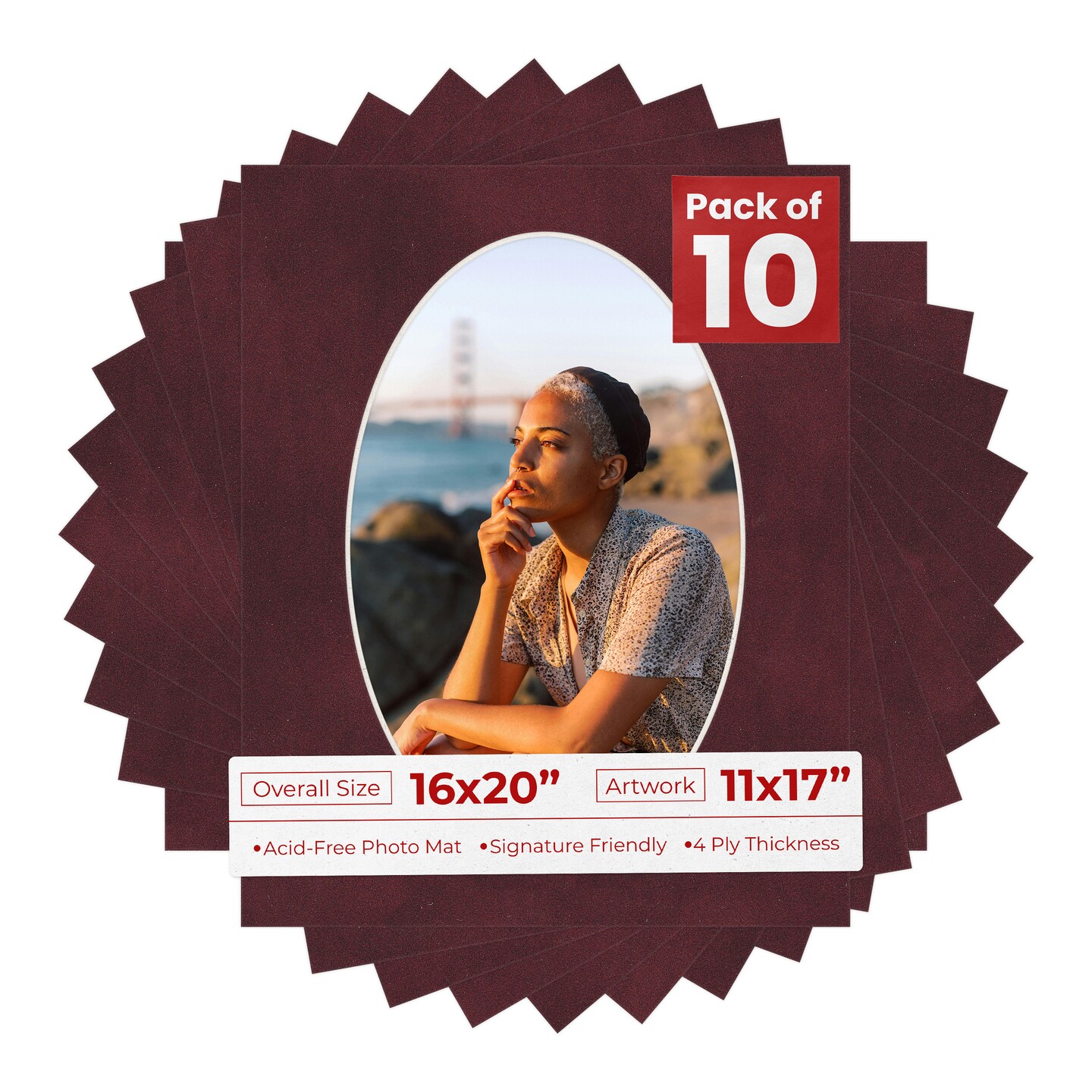 Dark Red Suede Mat Board for 16x20 Frames - Oval Opening for 11x17 Photos