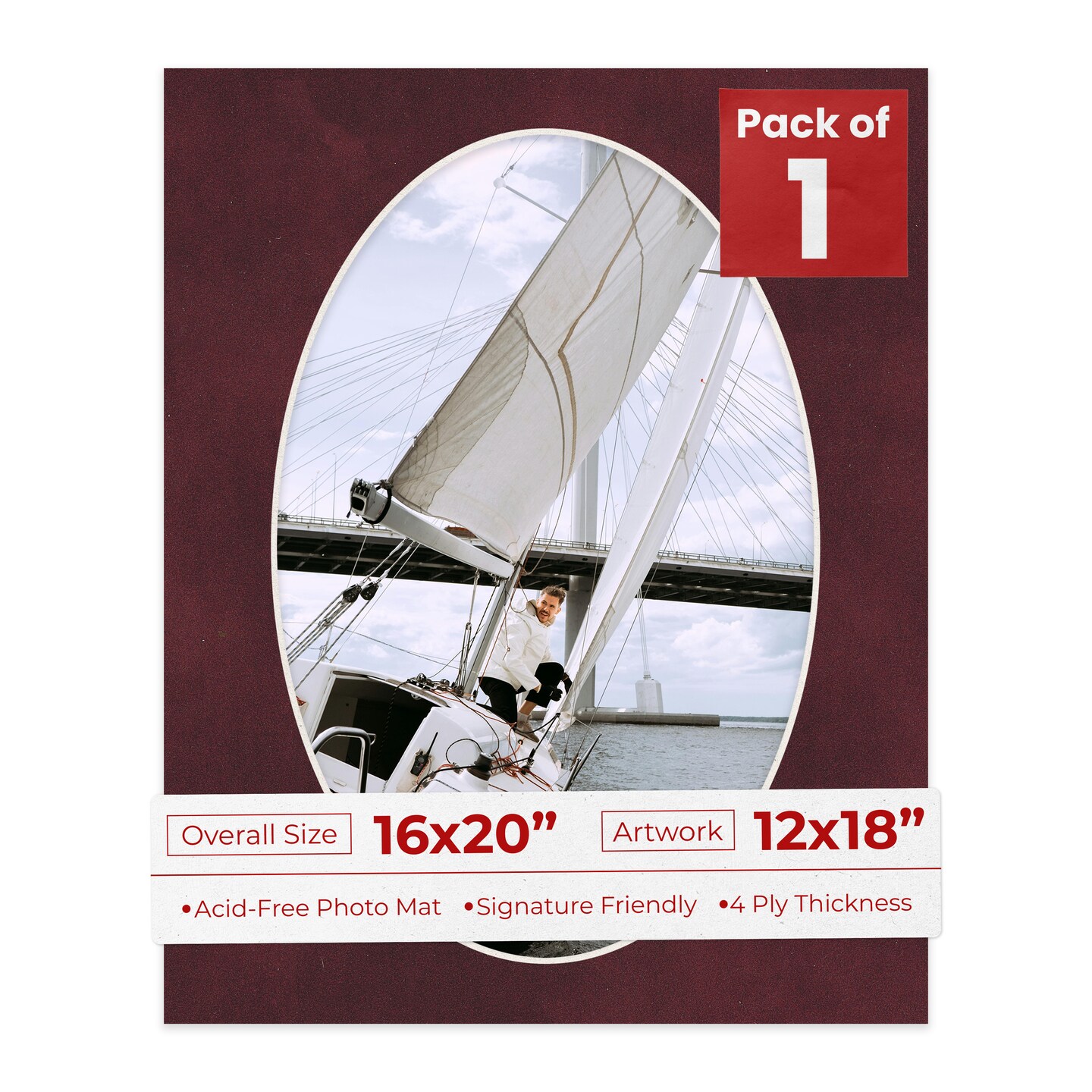 Dark Red Suede Mat Board for 16x20 Frames - Oval Opening for 12x18 Photos