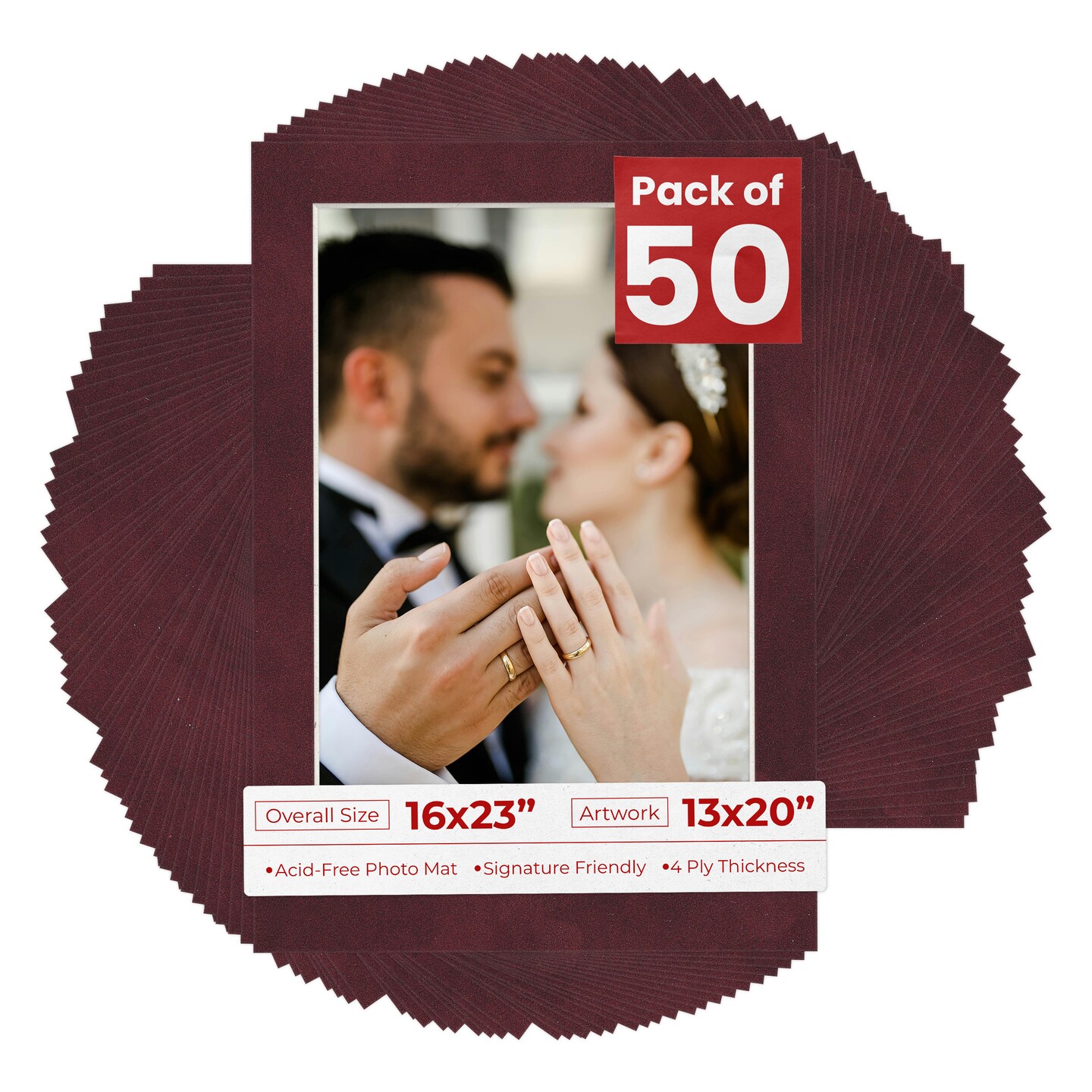 Dark Red Suede Mat Board for 16x23 Frames - Fits 13x20 Photos