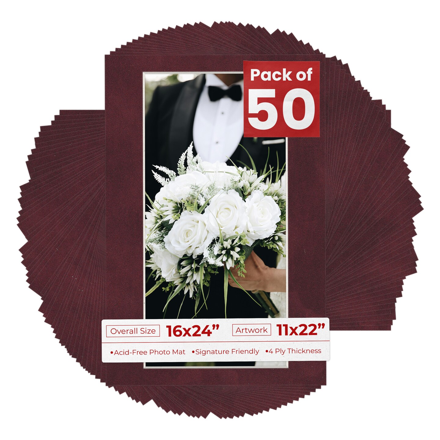 Dark Red Suede Mat Board for 16x24 Frames - Fits 11x22 Photos