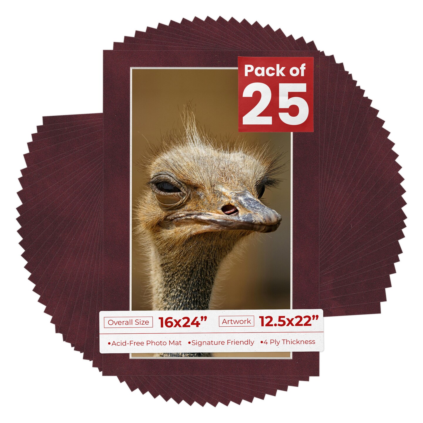 Dark Red Suede Mat Board for 16x24 Frames - Fits 12.5x22 Photos
