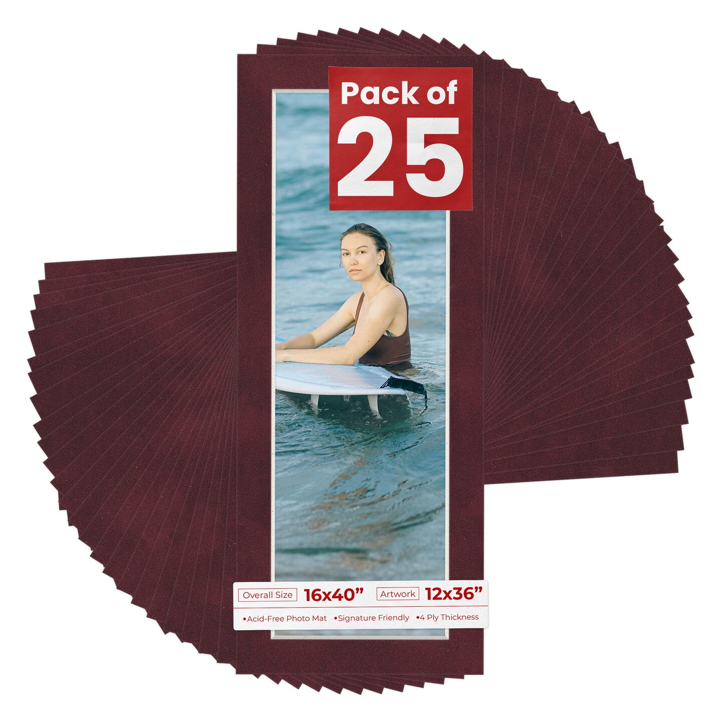 Dark Red Suede Mat Board for 16x40 Frames - Fits 12x36 Photos