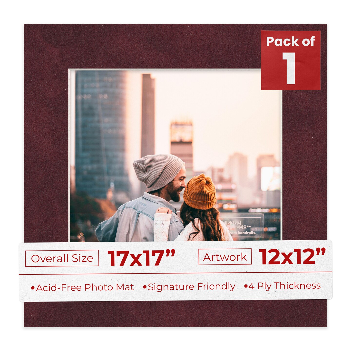 Dark Red Suede Mat Board for 17x17 Frames - Fits 12x12 Photos