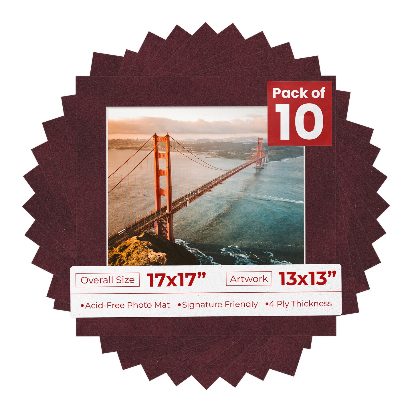 Dark Red Suede Mat Board for 17x17 Frames - Fits 13x13 Photos
