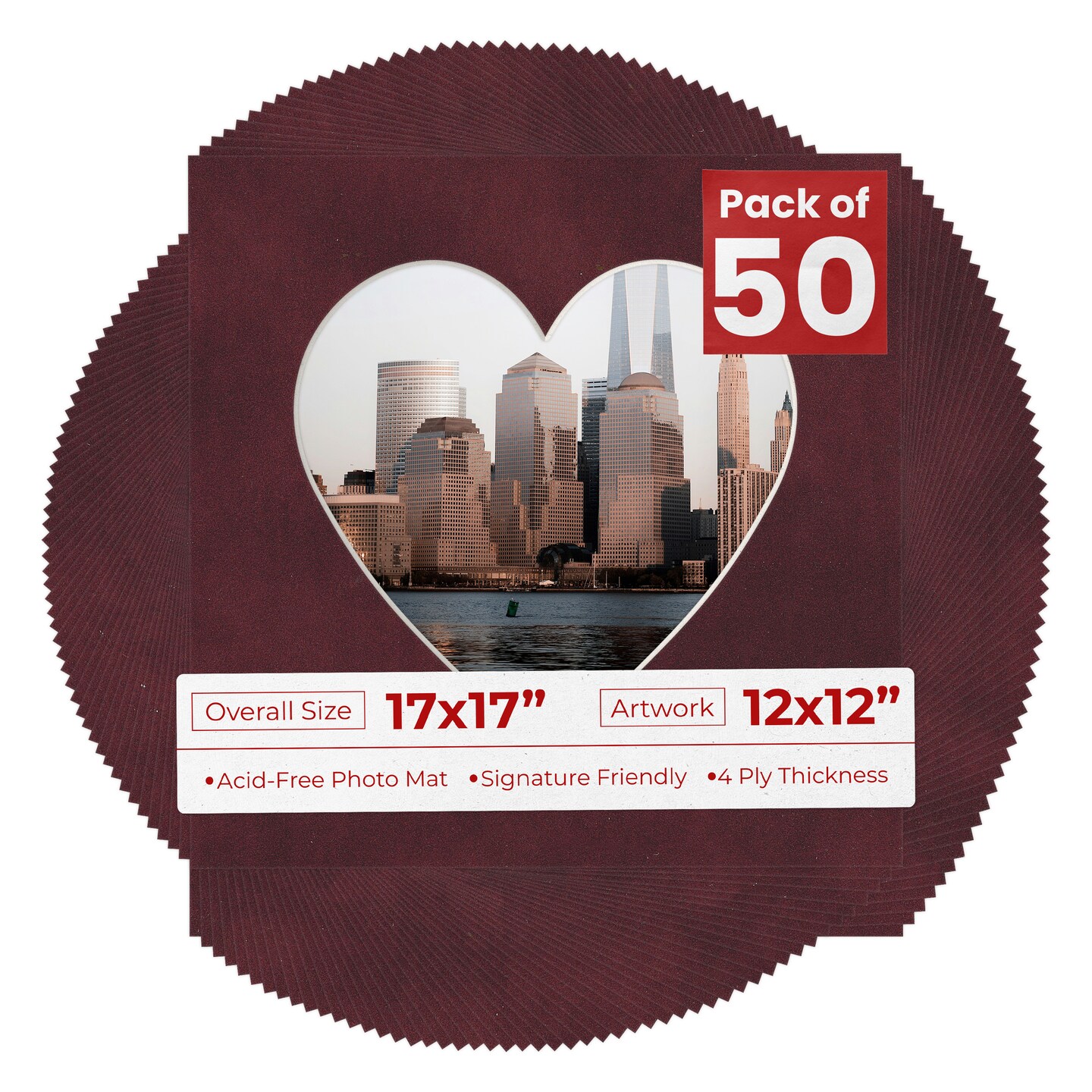 Dark Red Suede Mat Board for 17x17 Frames - Heart Opening for 12x12 Photos