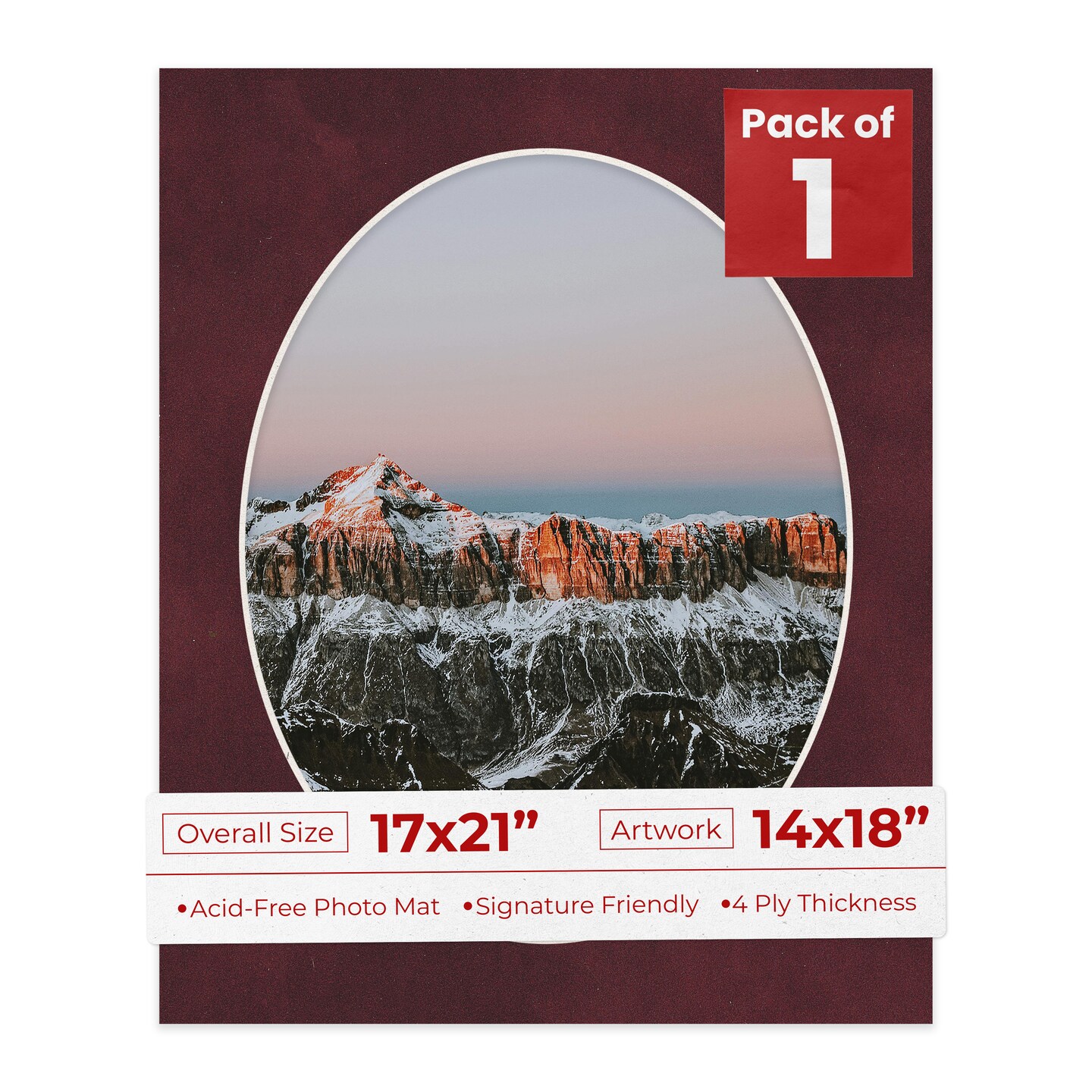 Dark Red Suede Mat Board for 17x21 Frames - Oval Opening for 14x18 Photos