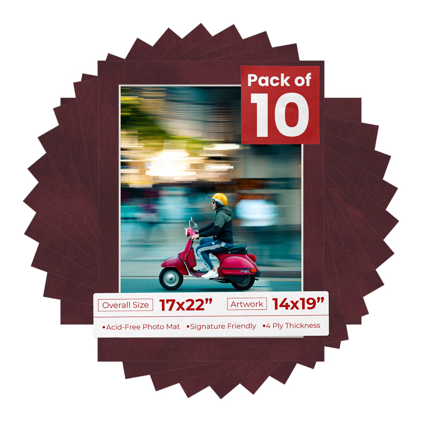 Dark Red Suede Mat Board for 17x22 Frames - Fits 14x19 Photos