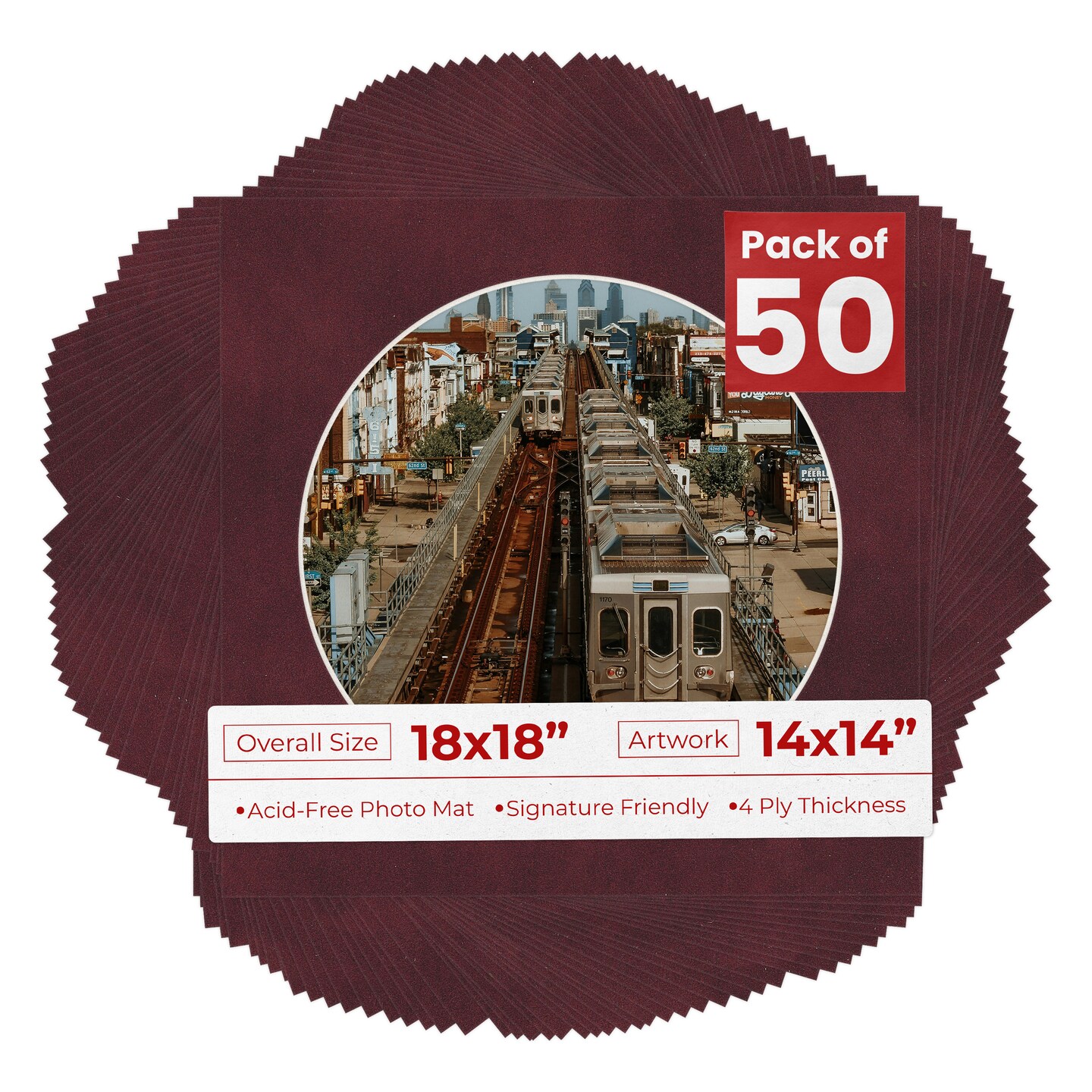 Dark Red Suede Mat Board for 18x18 Frames - Circle Opening for 14x14 Photos