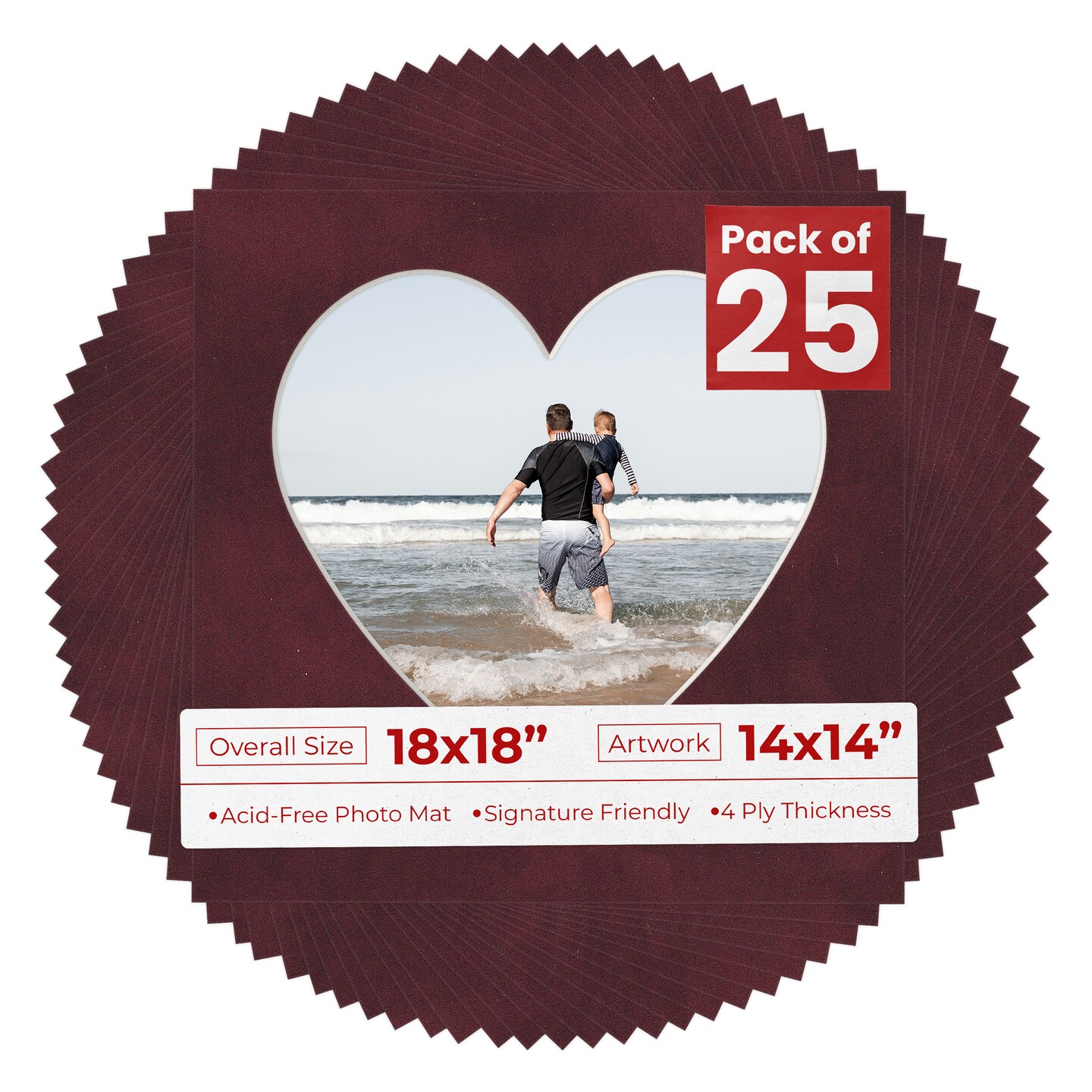 Dark Red Suede Mat Board for 18x18 Frames - Heart Opening for 14x14 Photos
