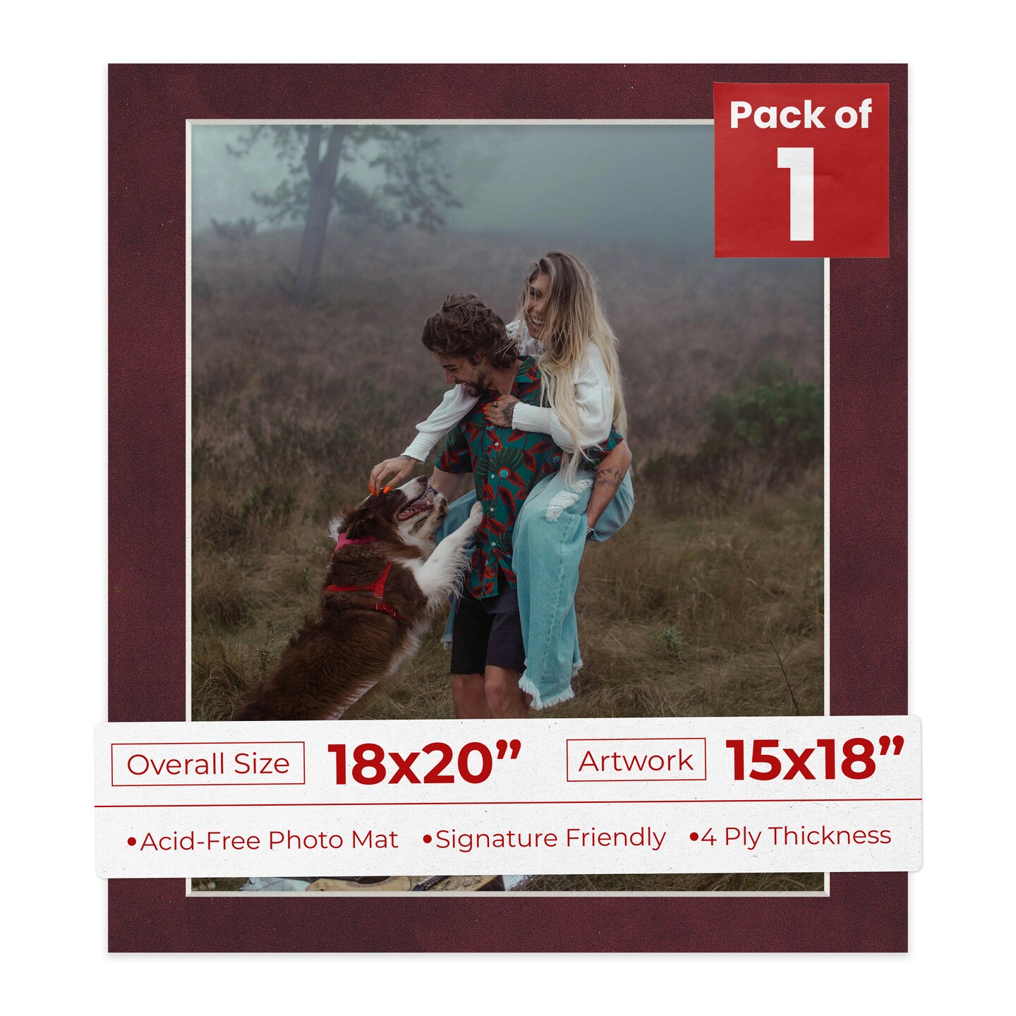 Dark Red Suede Mat Board for 18x20 Frames - Fits 15x18 Photos